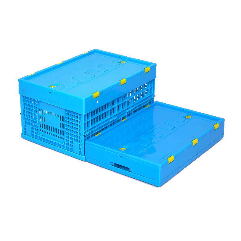 📚 600-300折叠筐带盖蓝色塑胶拦腰式可叠鸡蛋收纳筐长方形冷库胶框