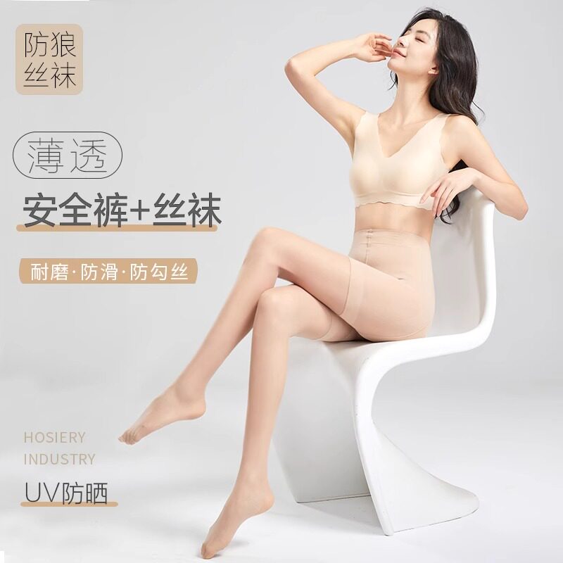 📚 防狼丝袜女薄款防勾丝光腿神器大码带安全裤防走光连裤美肤袜夏季