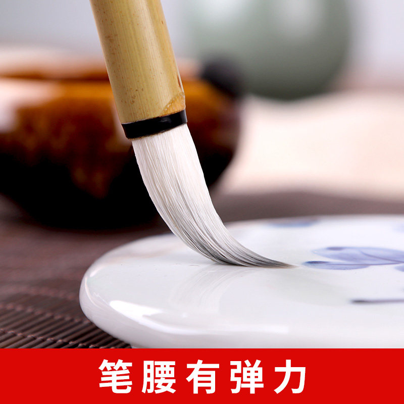 📚 六品堂初学者专用加健大中小白云毛笔羊毫兼毫成人书法学生国画工笔画上色毛笔大白云小白云毛笔套装