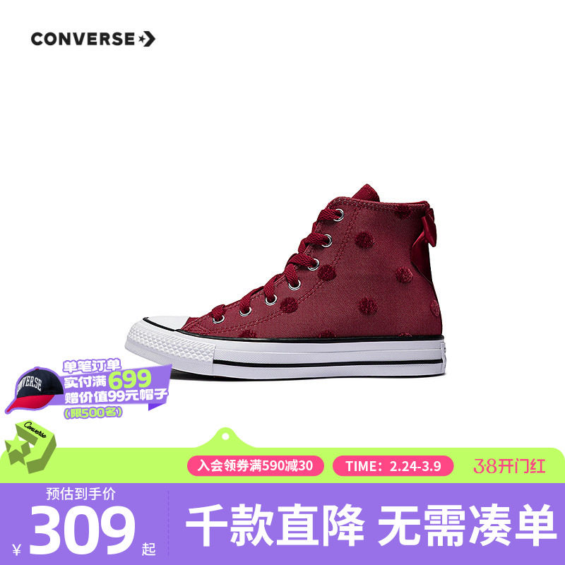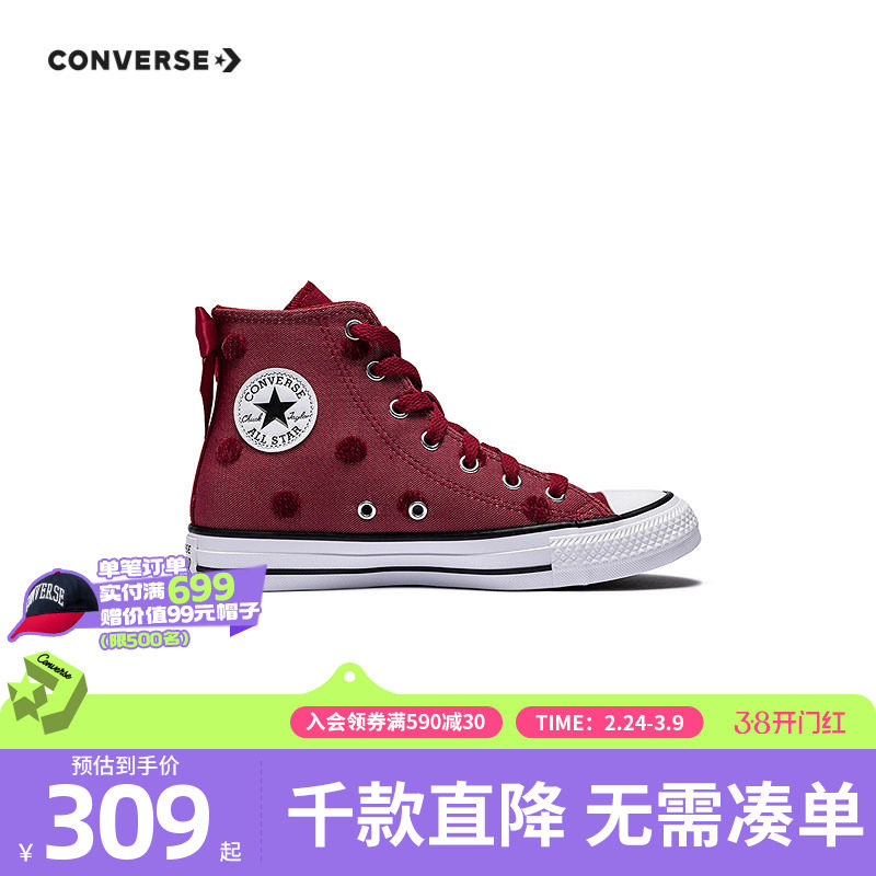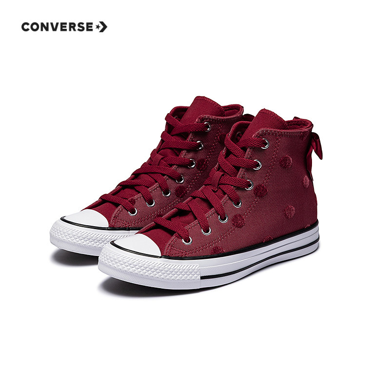 📚 匡威童装女童帆布鞋冬季新款休闲高帮鞋红色复古缓震大童时尚
