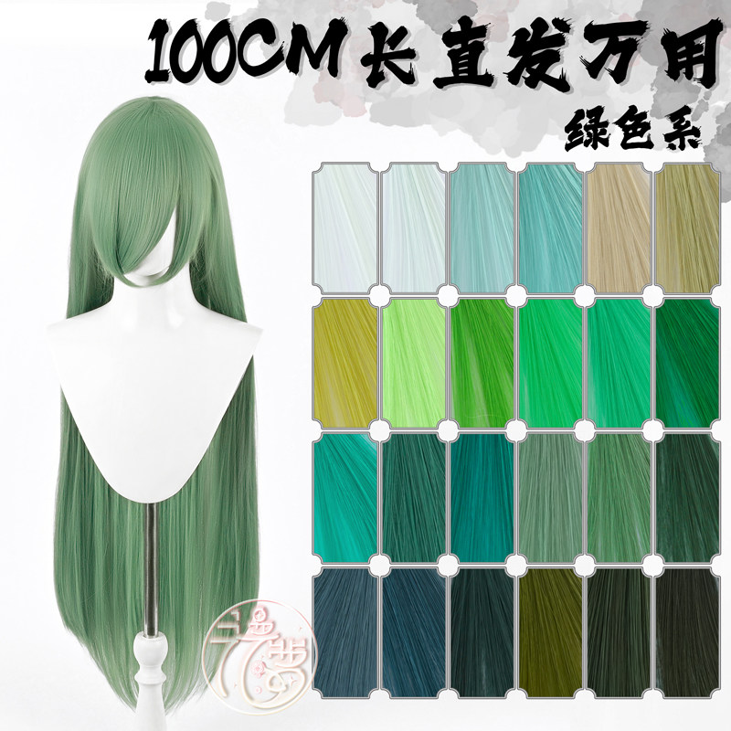 📚 漫萝 万用cos假发 绿色长发100cm 长刘海1米长直毛娘造型 cos假毛