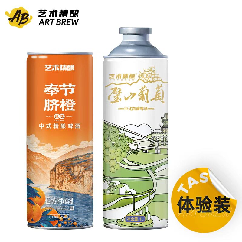 📚 艺术精酿精酿啤酒体验装璧山葡萄奉节脐橙 2罐组合装重庆发