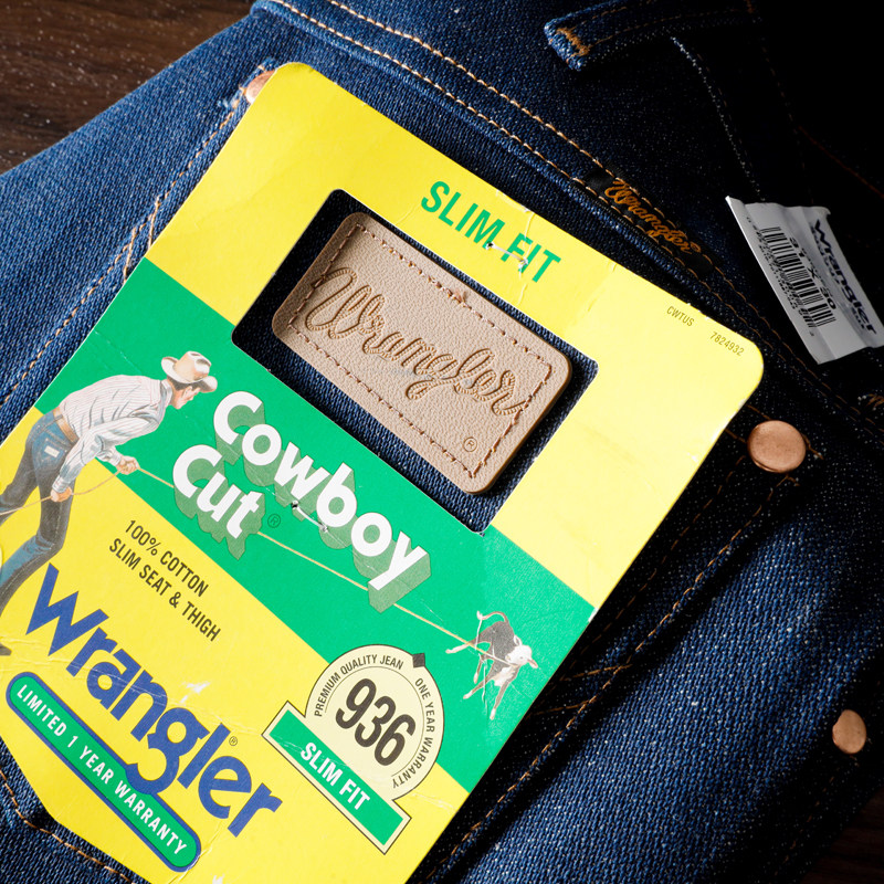 📚 Wrangler威格高腰修身锥形原色未脱桨牛仔裤男士重磅原牛裤936DEN