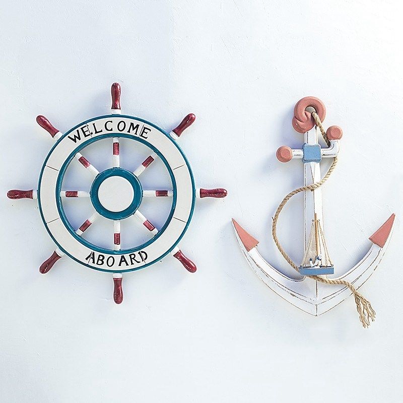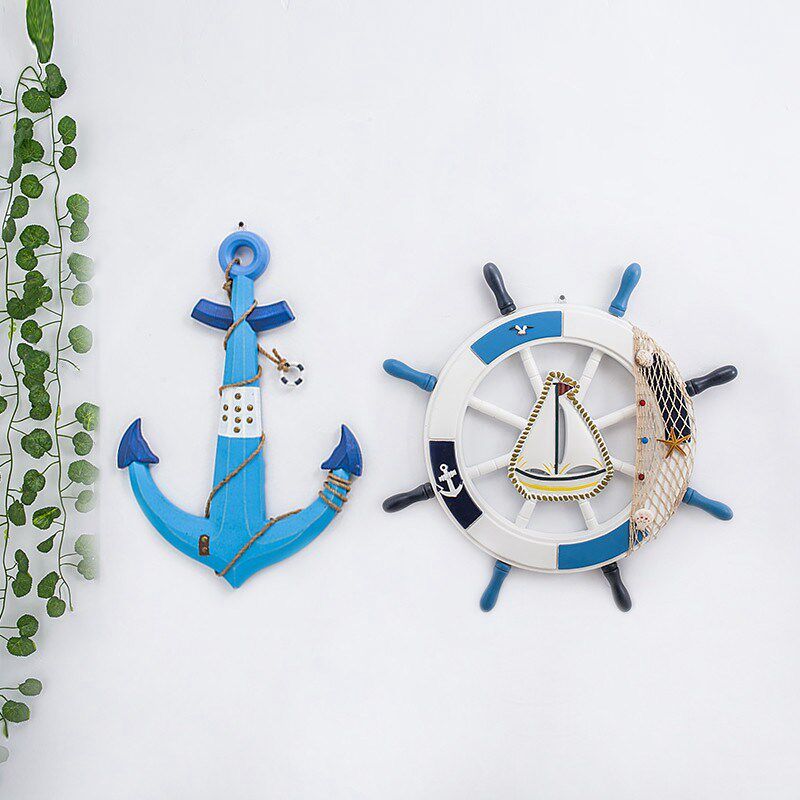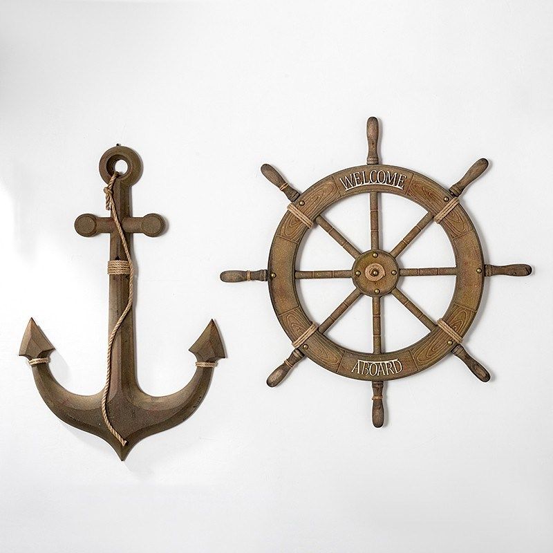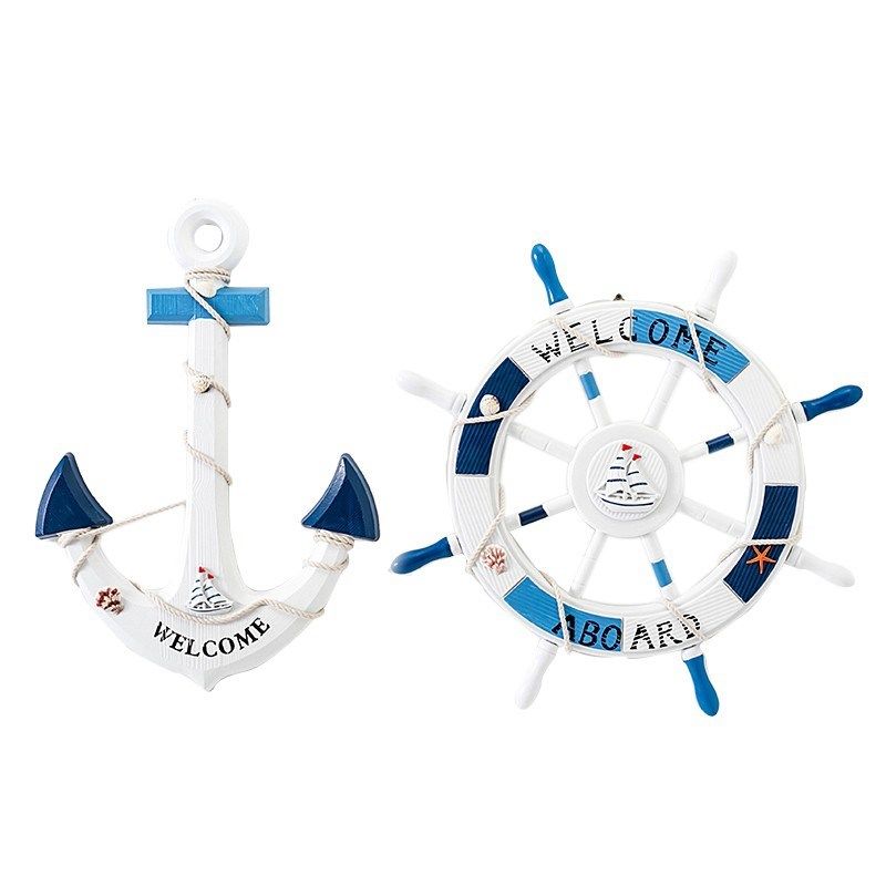 📚 地中海风格舵手装饰船锚船舵组合挂件海洋风舵锚家居办公工艺饰品