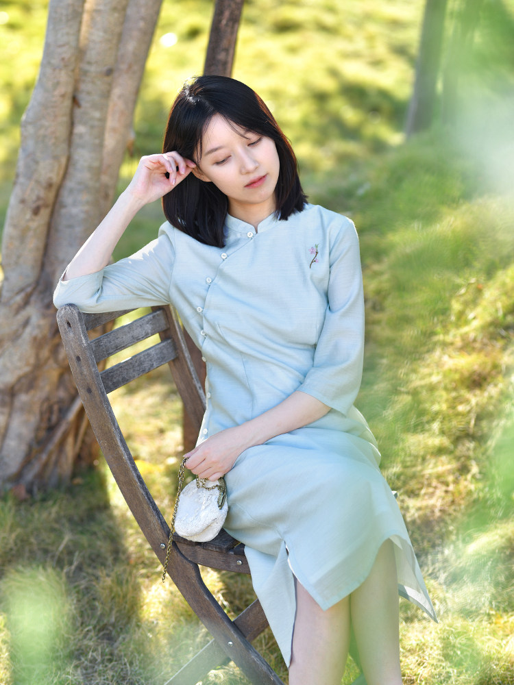 📚 24CXC-136【桃花依旧】前世今生复古轻中式民国风绣花修身旗袍