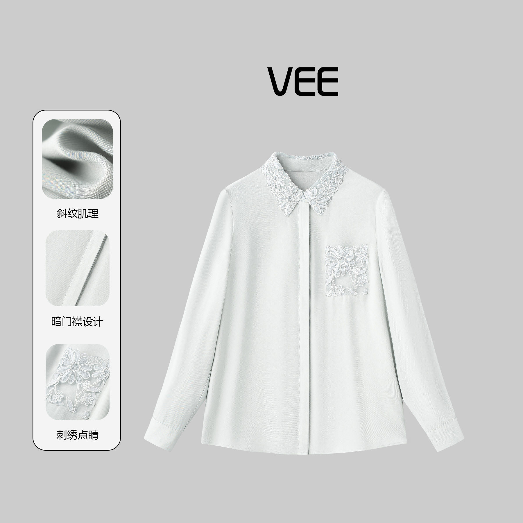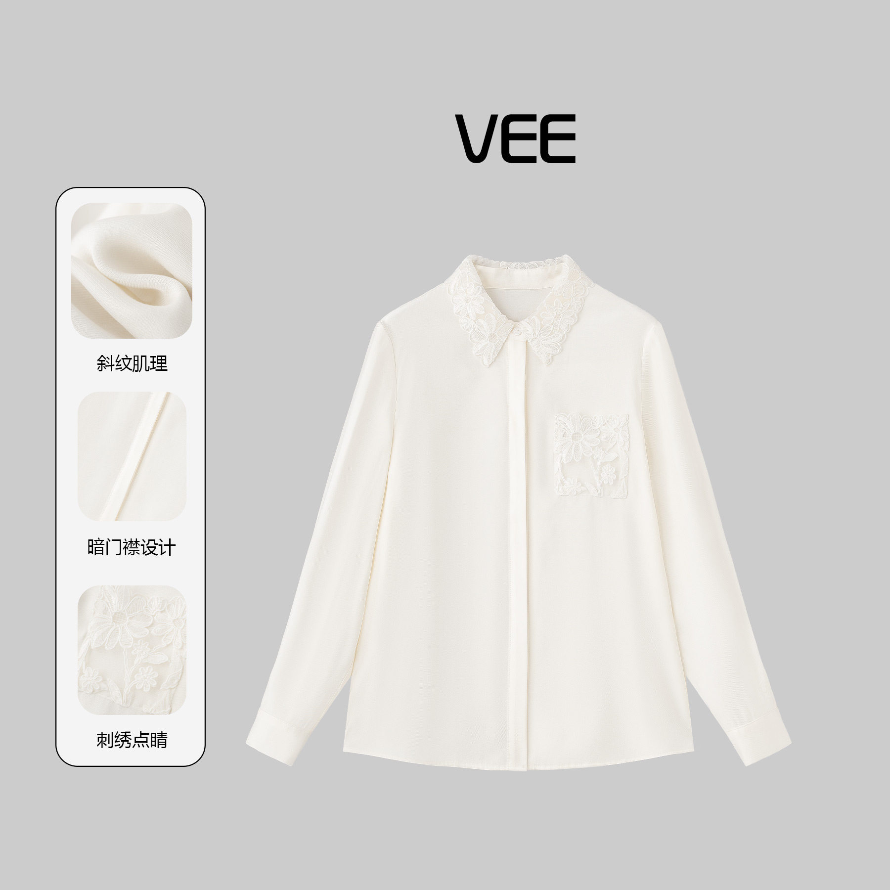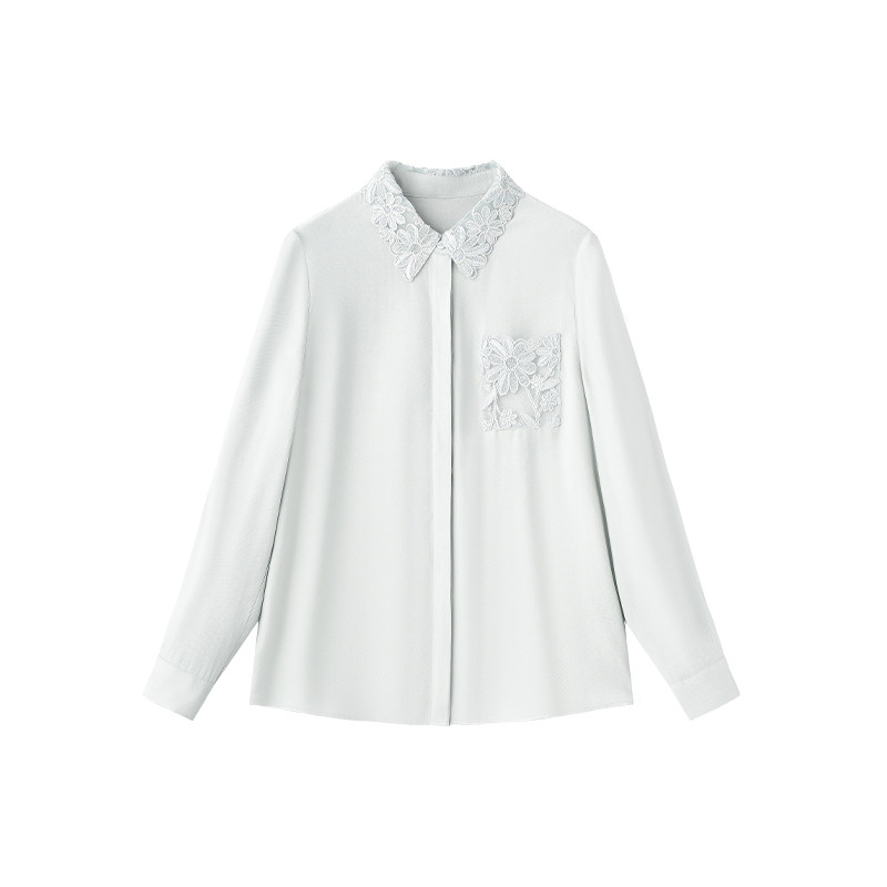 📚 VEE【精致感】蕾丝花边领衬衫女2026新款春翻领口袋长袖衬衣上衣