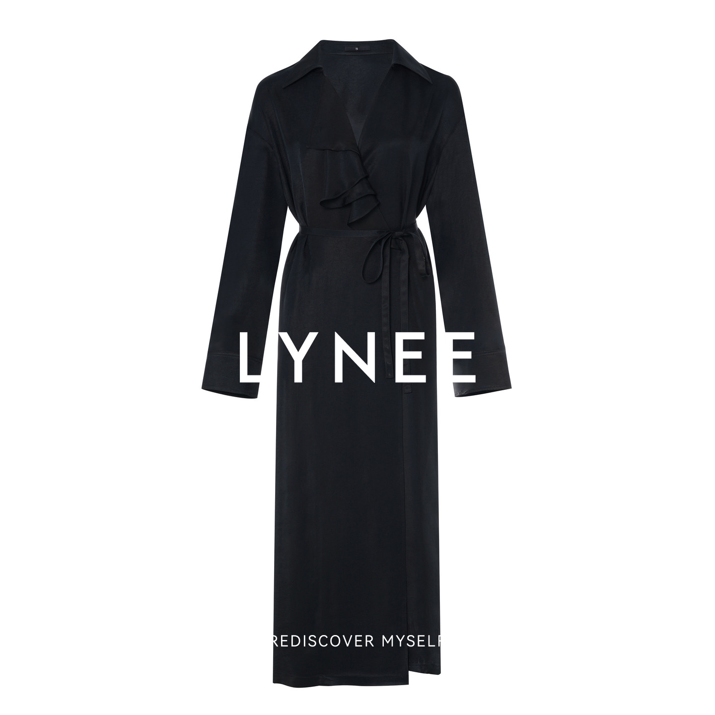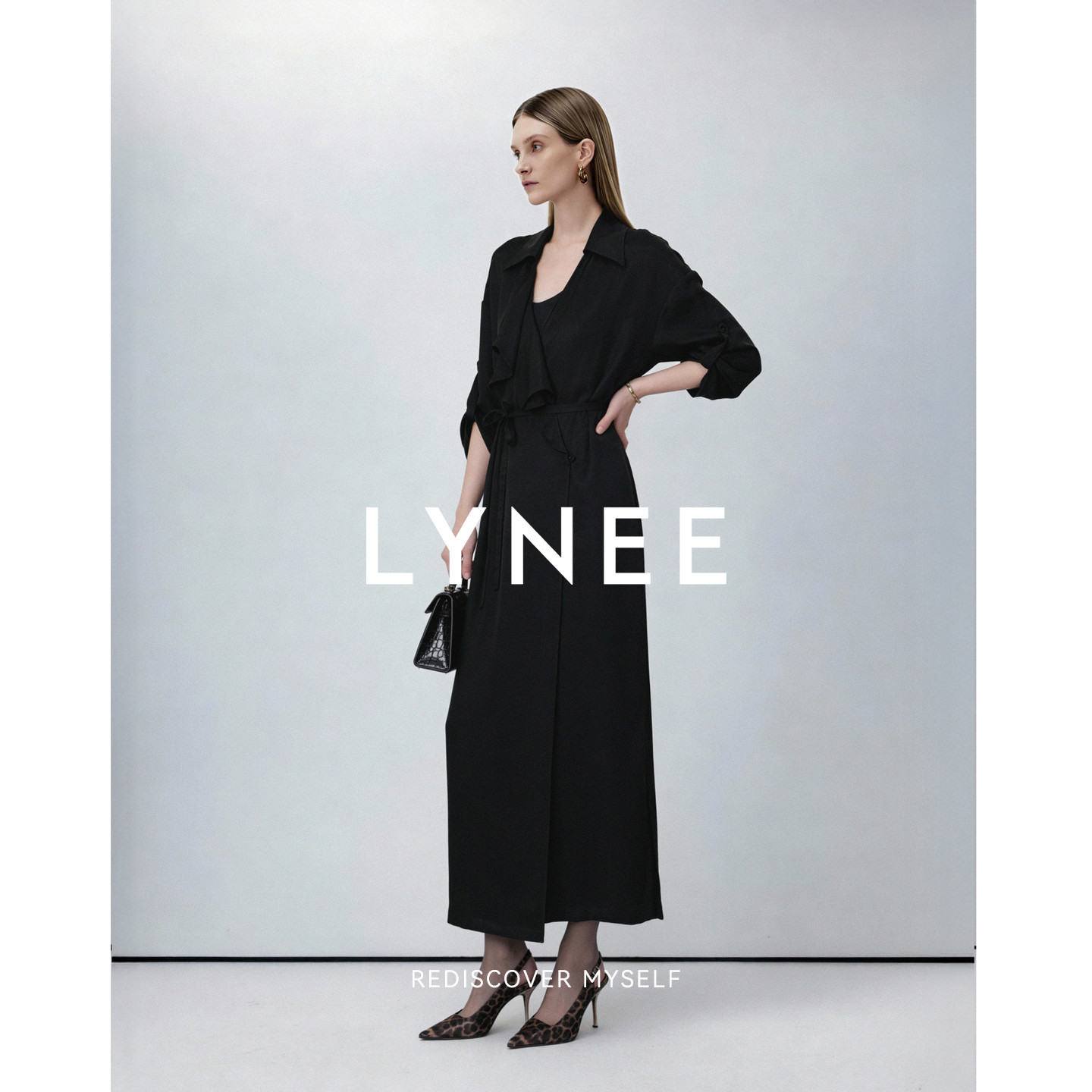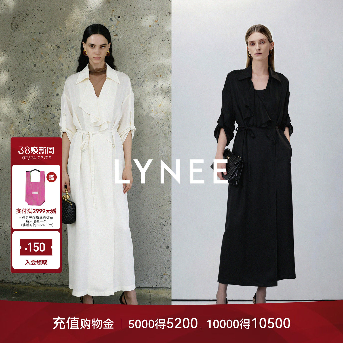 📚 LYNEE 100醋酸凉感垂顺宽松风衣式连衣裙女时尚显瘦长裙静奢风