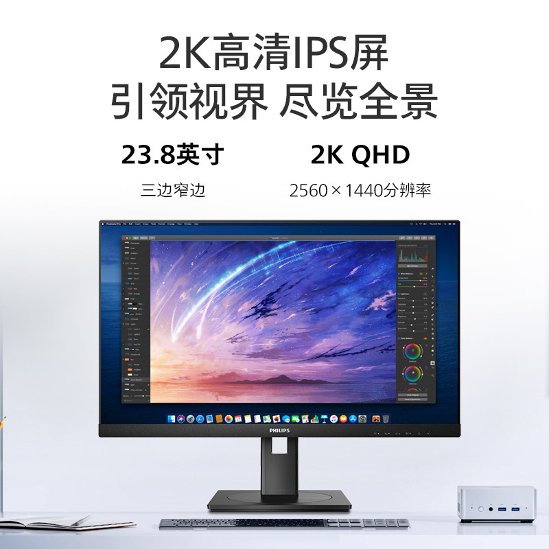 📚 飞利浦24英寸2K100hz显示器带Type-C接口办公外接显示屏24B1U3600