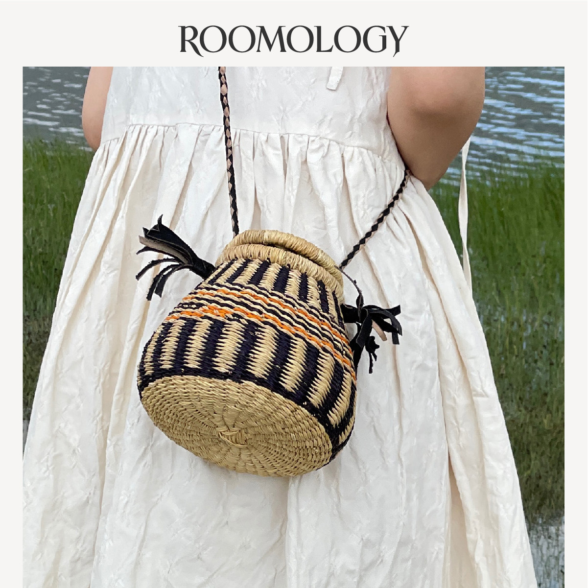 📚 Roomology非洲进口加纳手工草编壶篮斜挎包收纳户外出行包包配饰