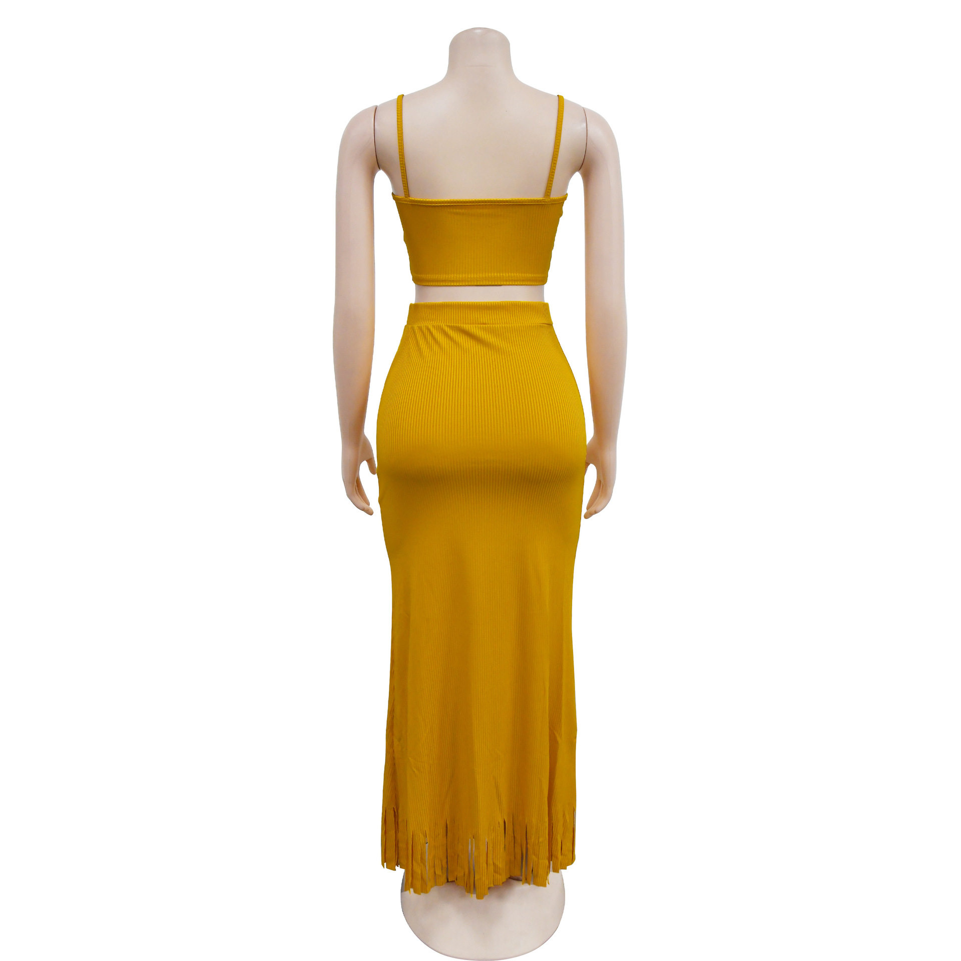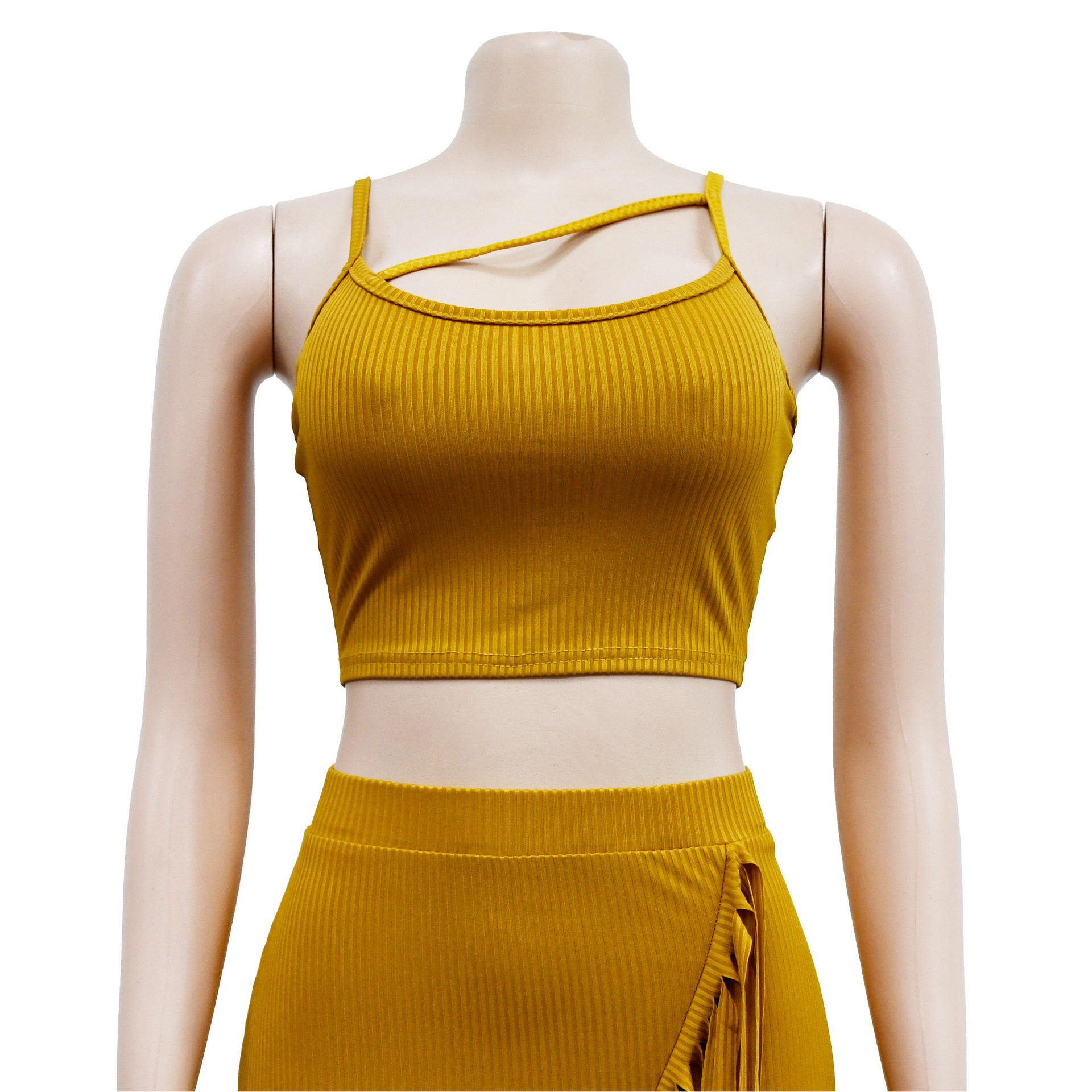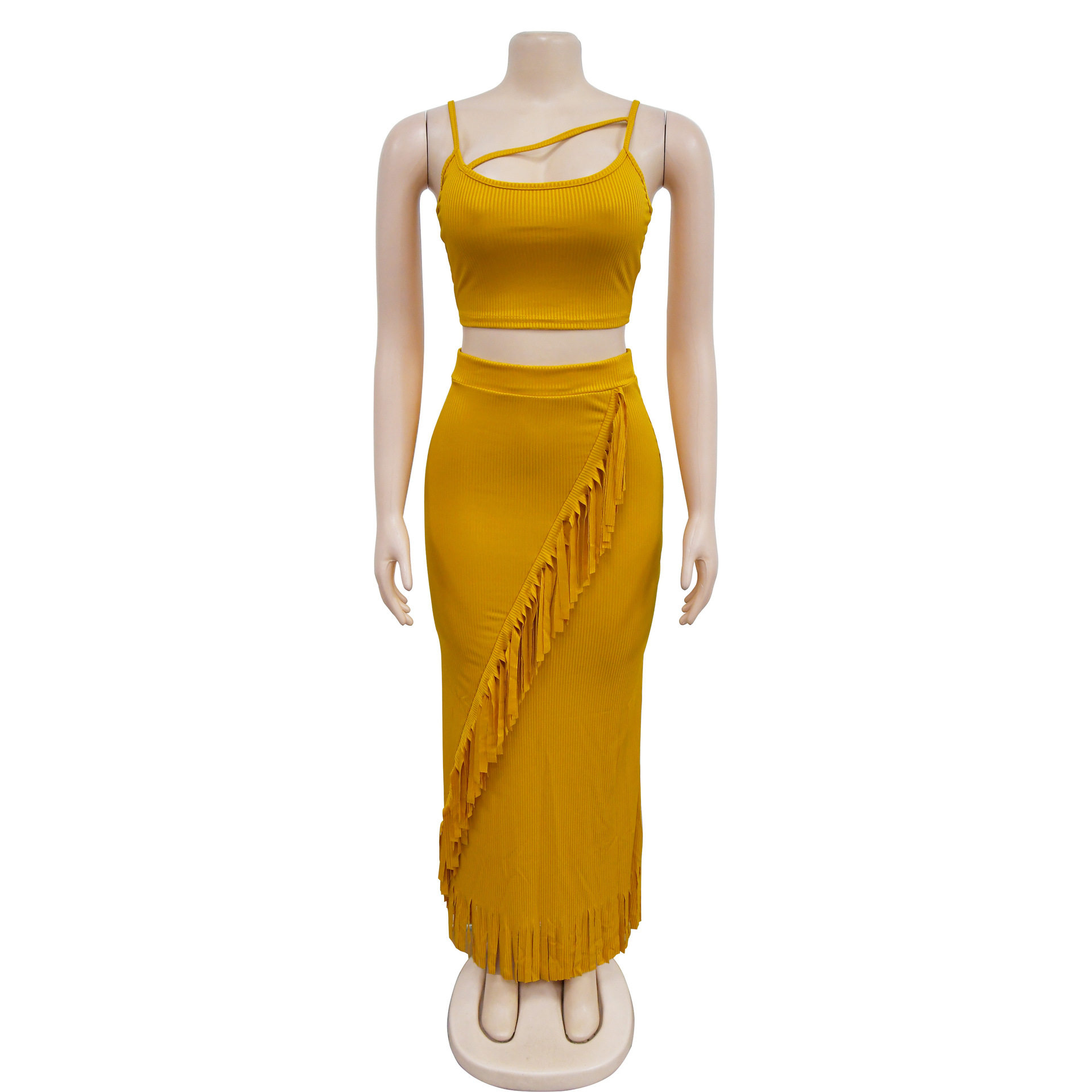 📚 trendy 2 piece for women design sexy singlet tassel skirt