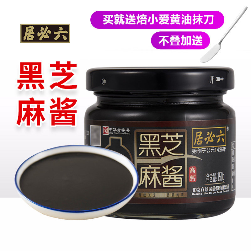 📚 六必居黑芝麻酱150g早餐抹吐司面包涂抹拌面火锅蘸料纯烘焙家用