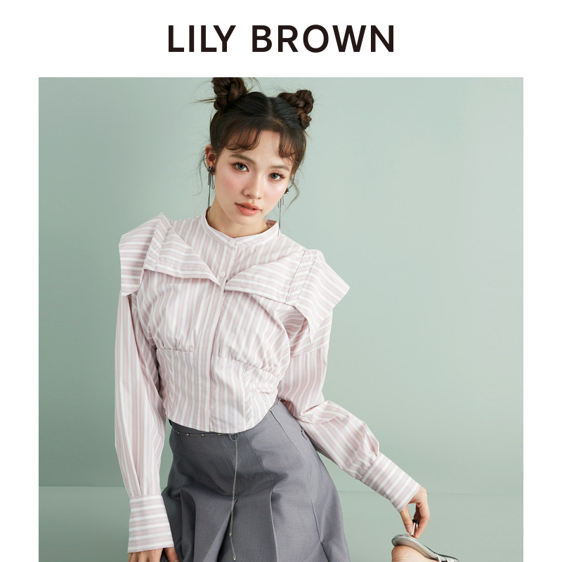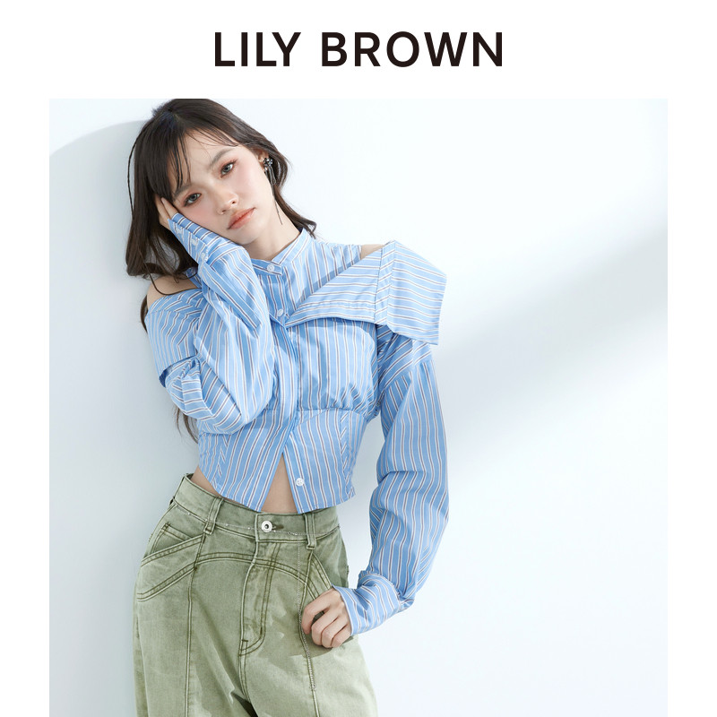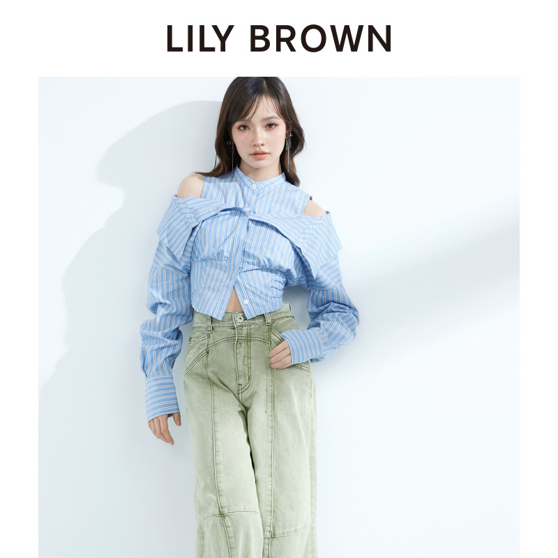 📚 LILY BROWN春夏款 甜美露肩翻领假两件收腰衬衫LWFB241154