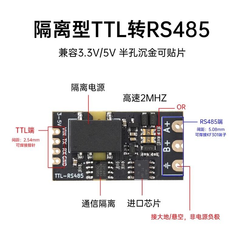 📚 DC 3.3V/5V 隔离型TTL转RS485电平模块 串口自动换向高速2Mbps