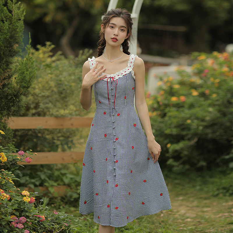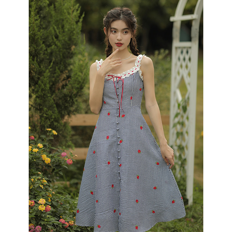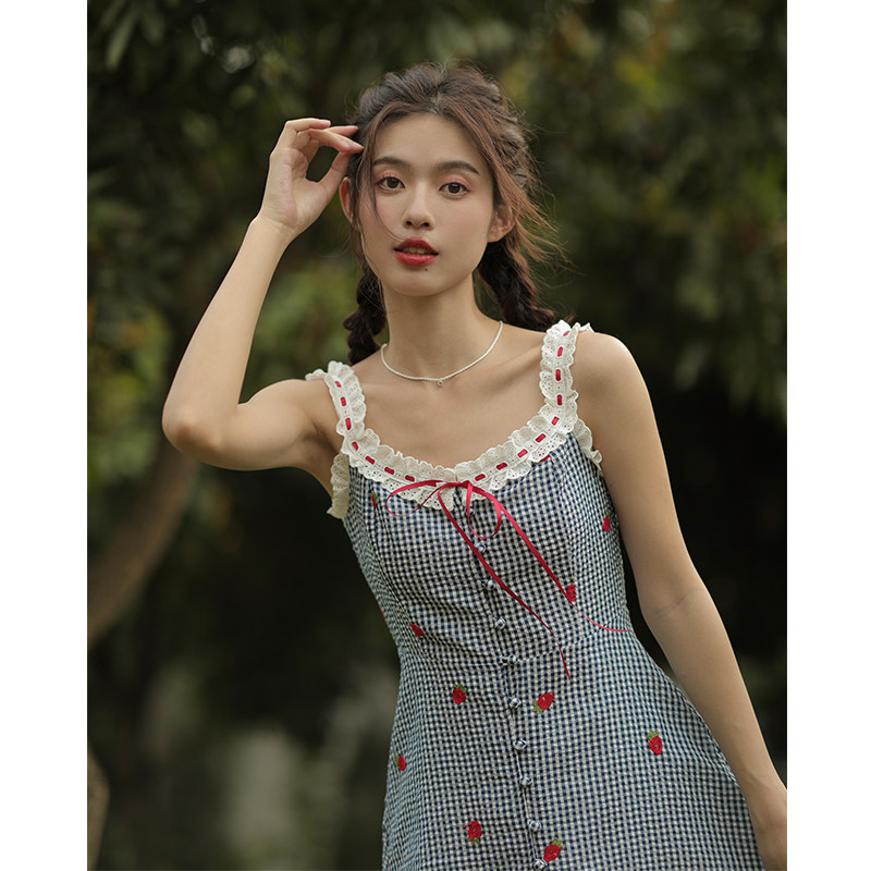 📚 奈良港味复古chic裙子蕾丝吊带裙2025新款茶歇法式连衣裙V领复古