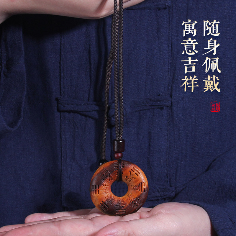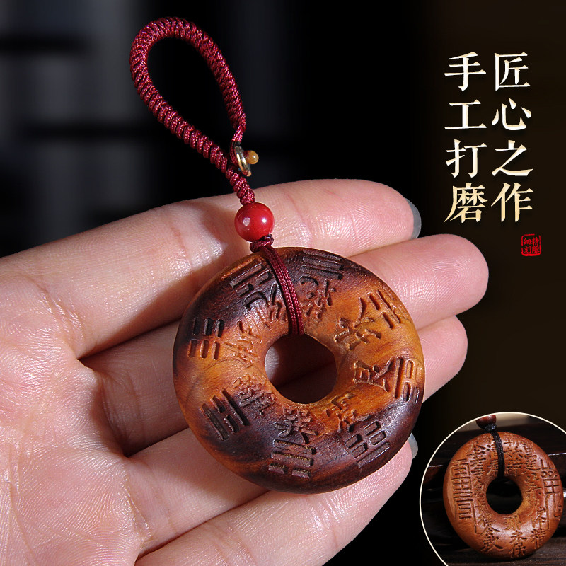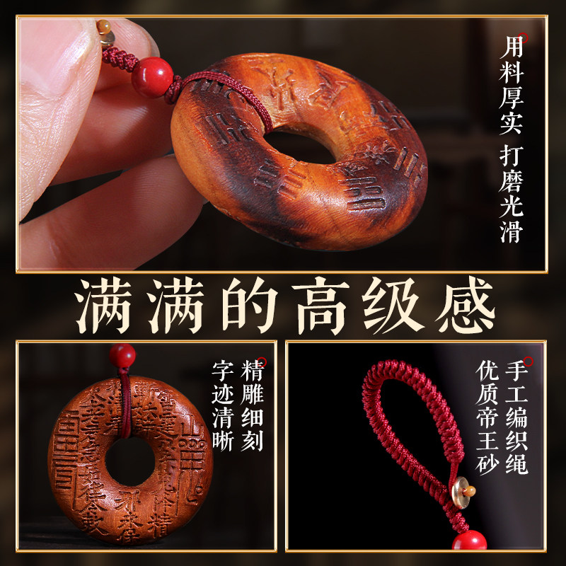 📚 雷击桃木八卦山鬼花钱项坠钥匙扣挂件雷焦随身携带朱砂成人婴儿童