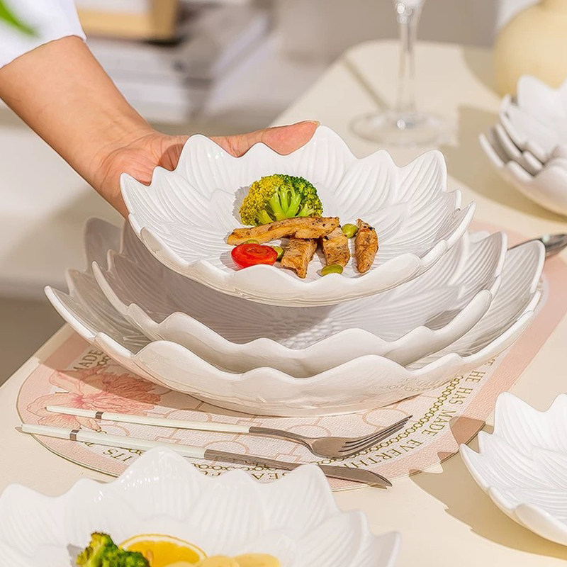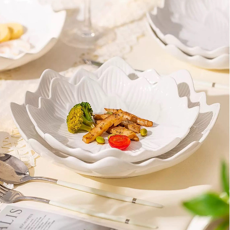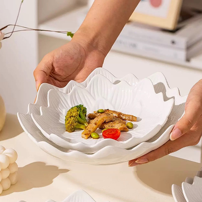 #白色莲花大号汤盘 #家用菜盘 #高颜值陶瓷 #餐具新选择 #餐点新宠