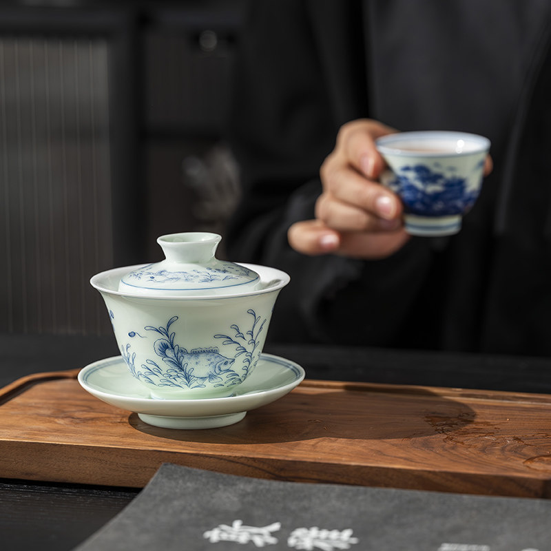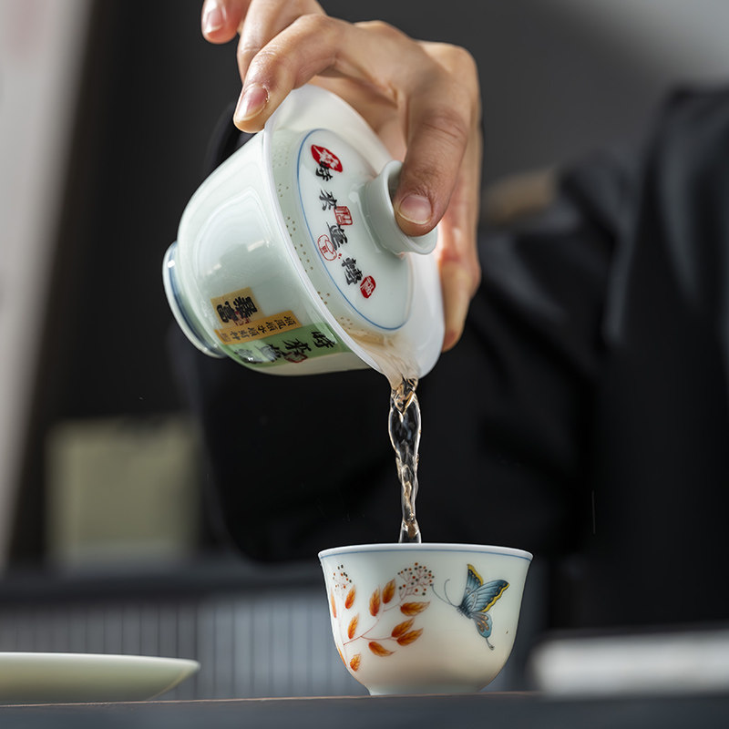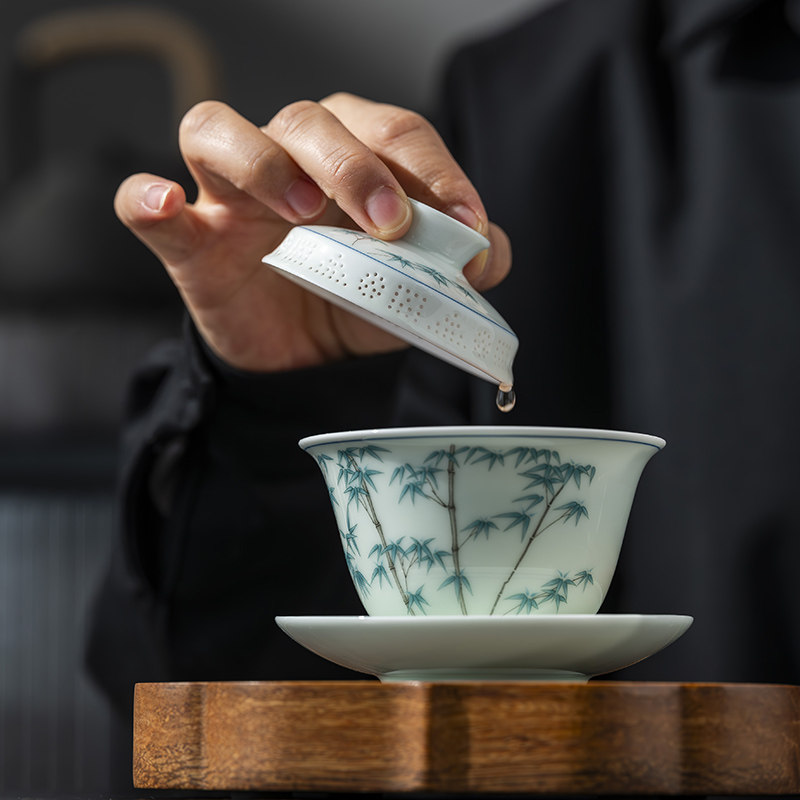 📚 鑫艺缘青花彩绘防烫三才盖碗茶杯茶碗单个高档功夫茶具泡茶碗带盖