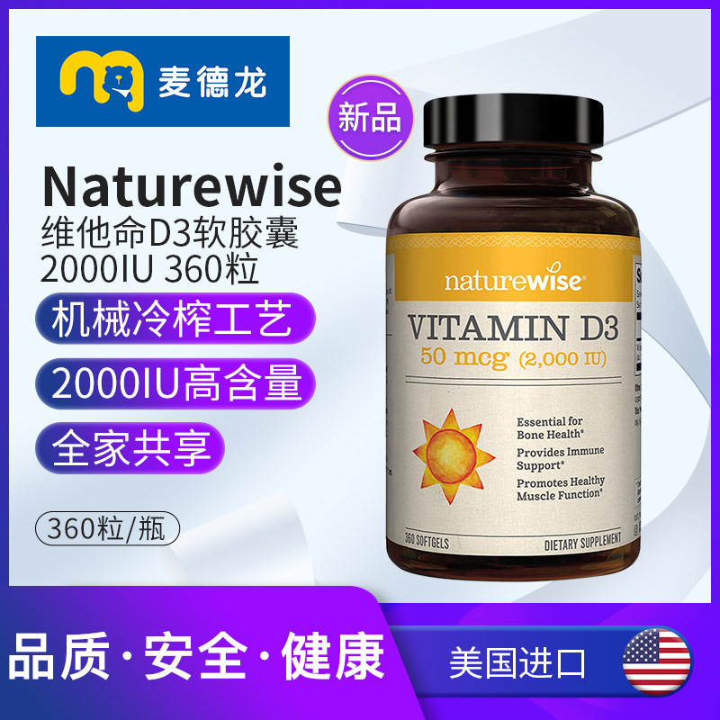 📚 麦德龙美国Naturewise2000iu活性nw阳光瓶羟基维生素d3胶囊360粒