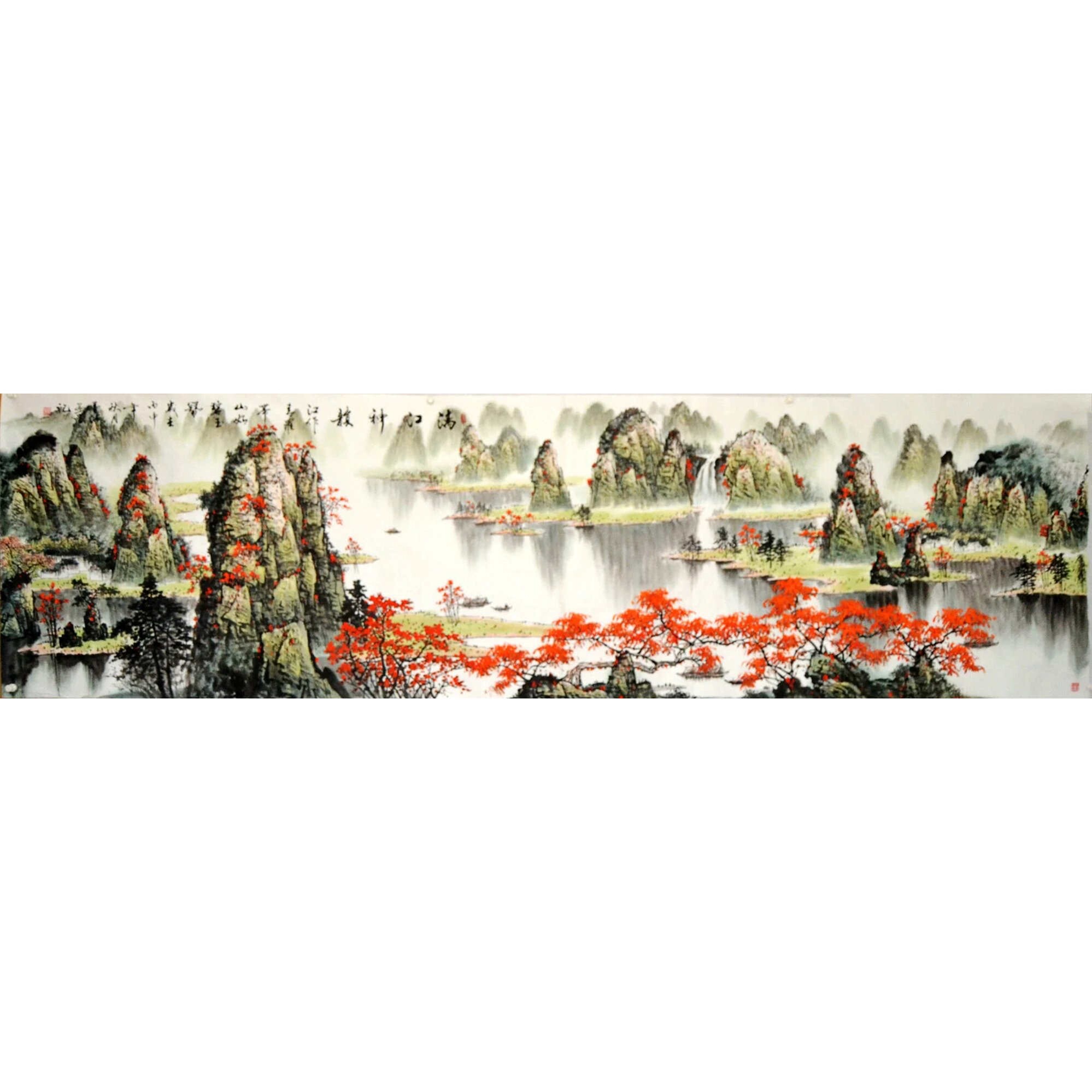 📚 小丈二巨幅大尺寸字画桂林山水画中式纯手绘客厅墨海大堂酒店装饰