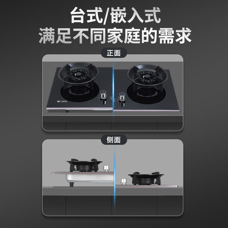 📚 万菲达5.2KW猛火双灶煤气灶家用嵌入式台式天然气液化气翻盖炉具