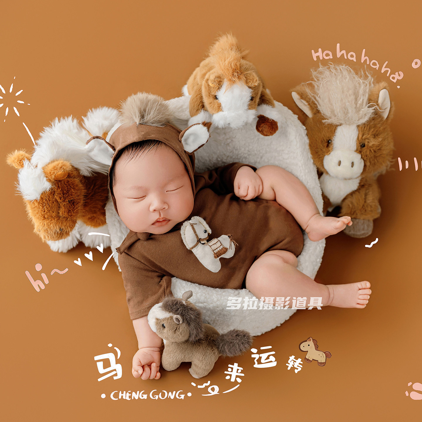 📚 可爱婴儿摄影马宝宝主题 影楼新生的儿拍摄写真服装玩偶辅助道具