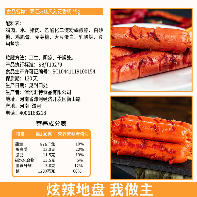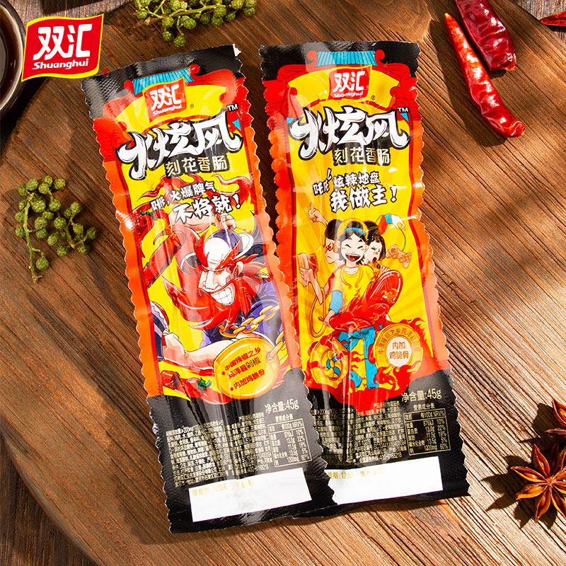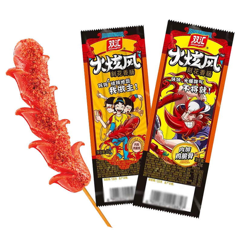 📚 双汇火炫风刻花香肠45g*50支火腿肠烤肠脆骨肠即食大根肉肠整箱
