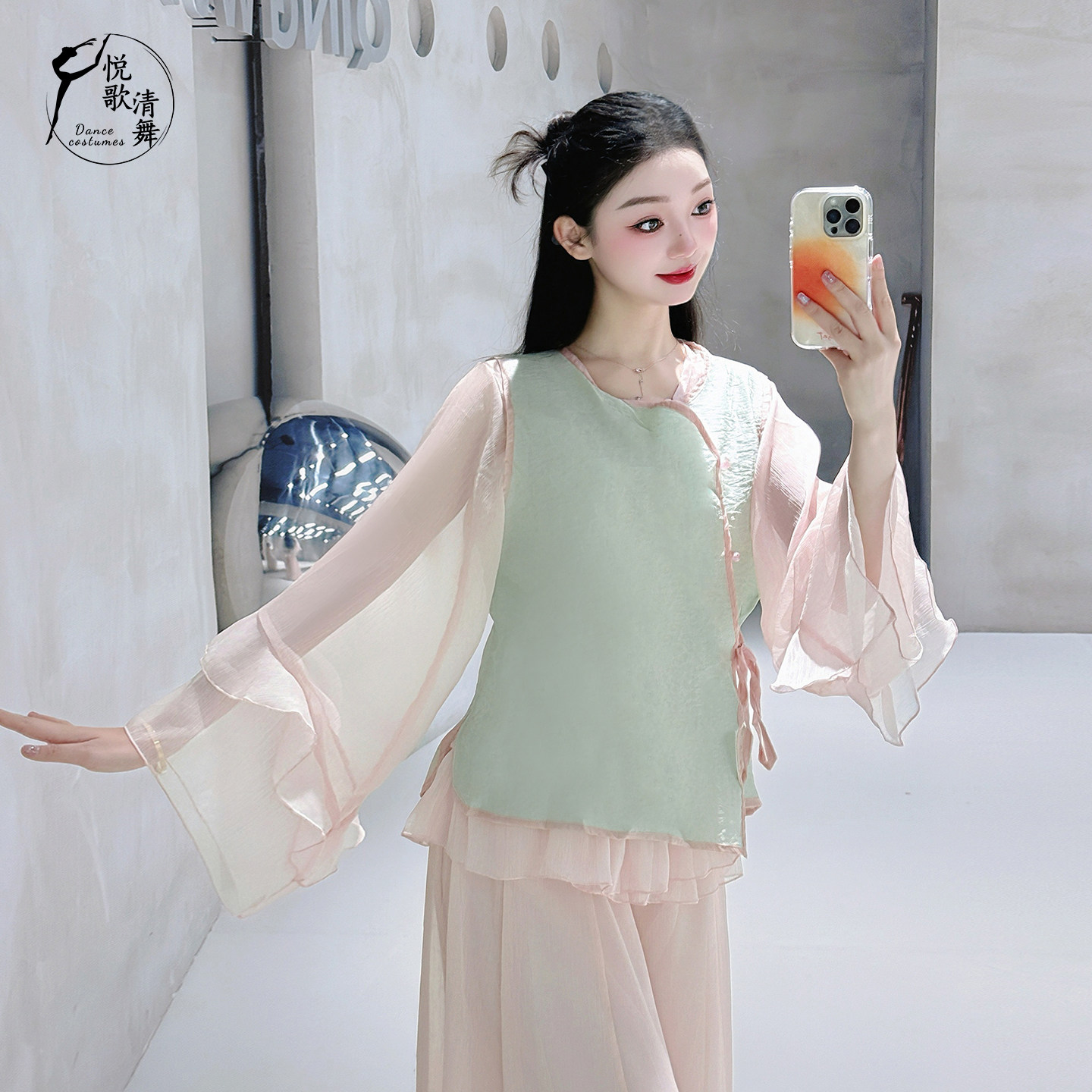 👗这款上衣采用了轻盈的网纱设计,仿佛在舞蹈中舞动起来,充满了飘逸与灵动。穿上它,仿佛穿越时空,置身于古典舞的世界中。🎉