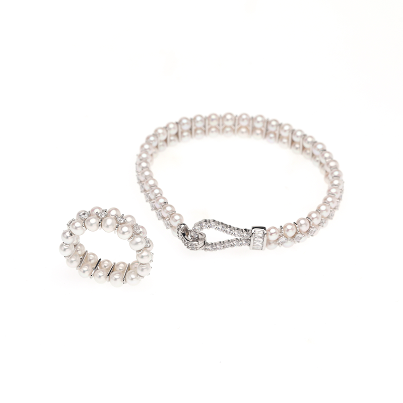 📚 【胡可推荐】红桥珍珠 淡水AK有核珍珠4-5mm双排手链送戒指 合金