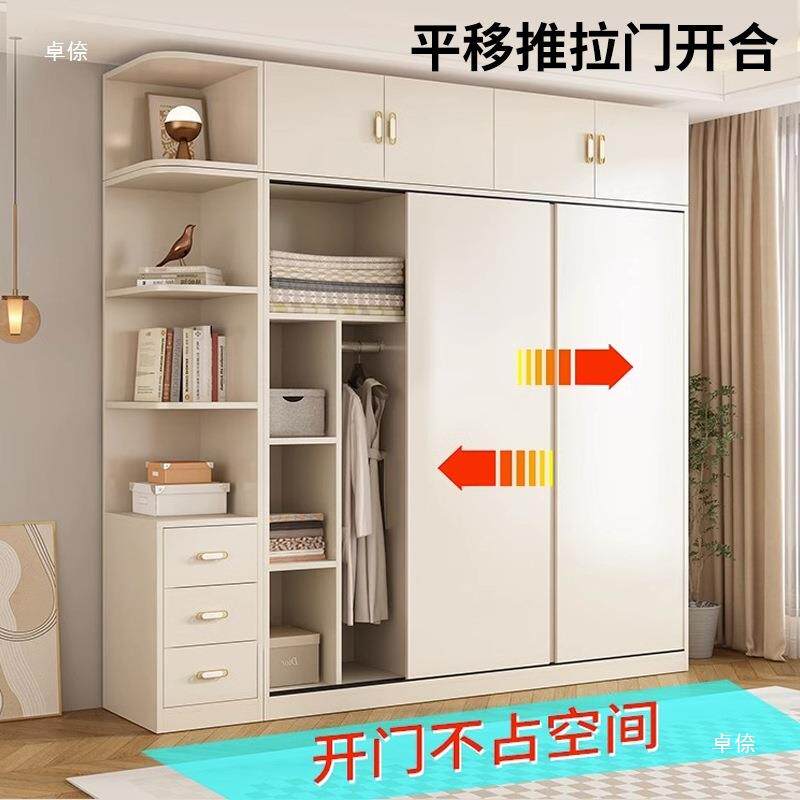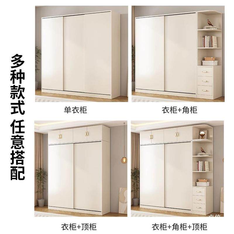 📚 衣柜木板自己组装佛山奶油大衣柜家用卧室推拉门简易衣橱出租房用