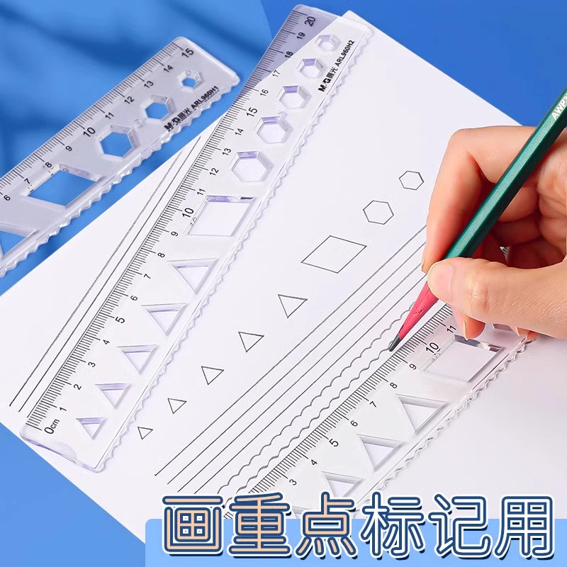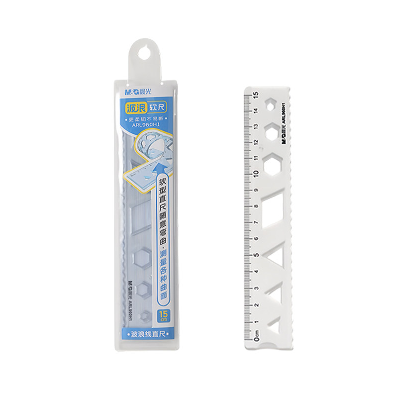 📚 晨光ARL960H1波浪软尺小学生专用多功能简约ins透明考试绘图测量随意弯曲软柔韧不易折断带波浪线软型尺子