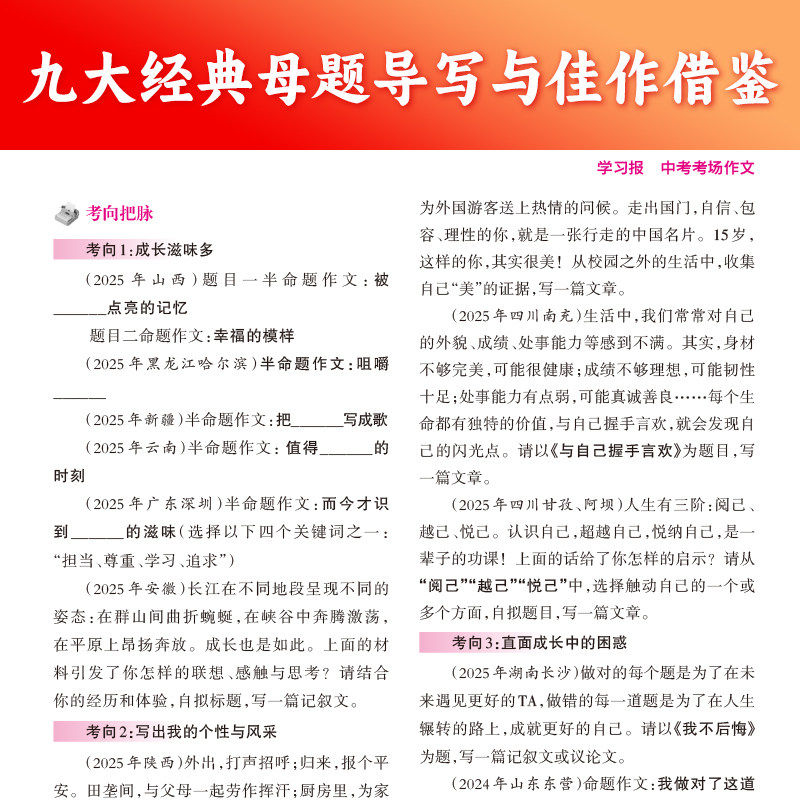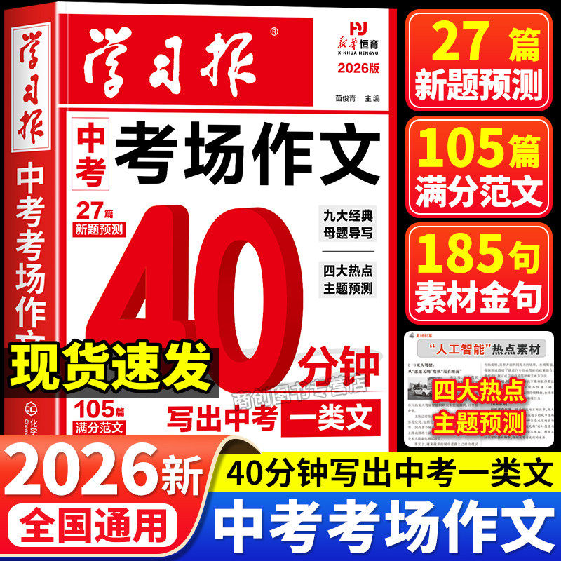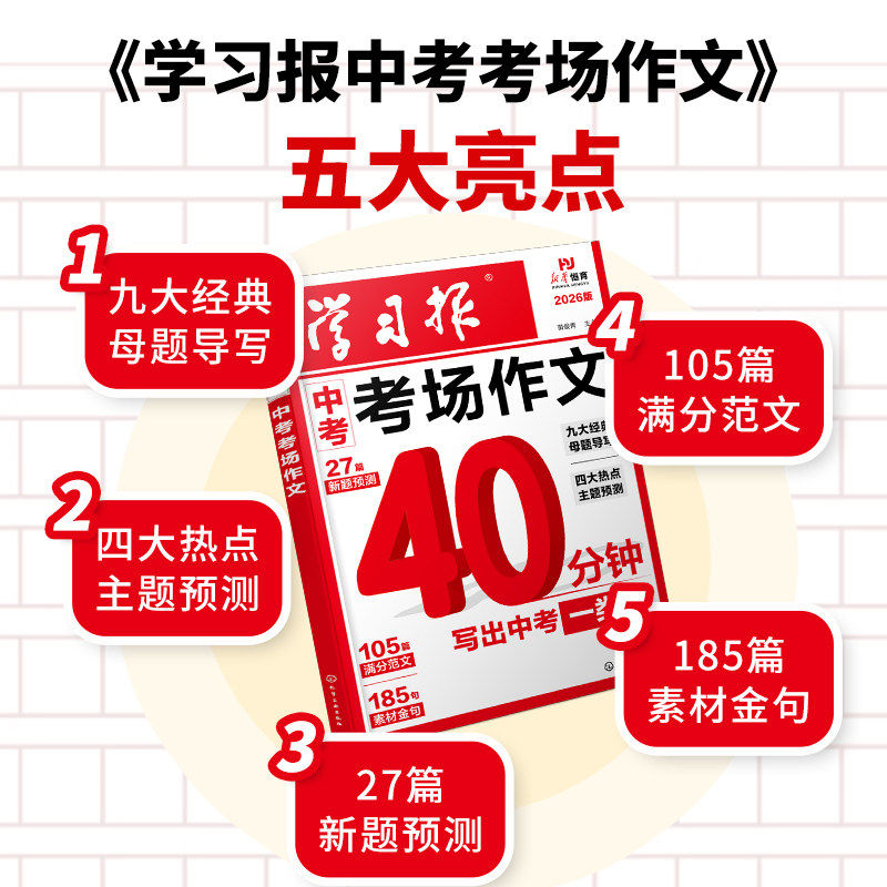 📚 中考满分作文2026新版人教版初中生学习报中考考场作文热点预测语文备考冲刺高分作文写作素材模版大全初一初二三高分金句摘抄押题