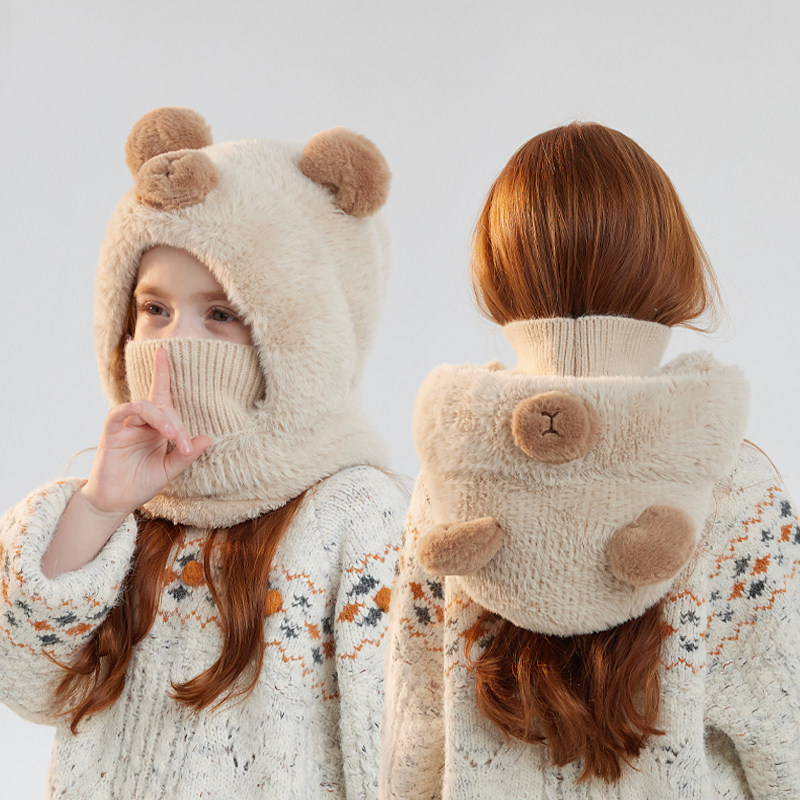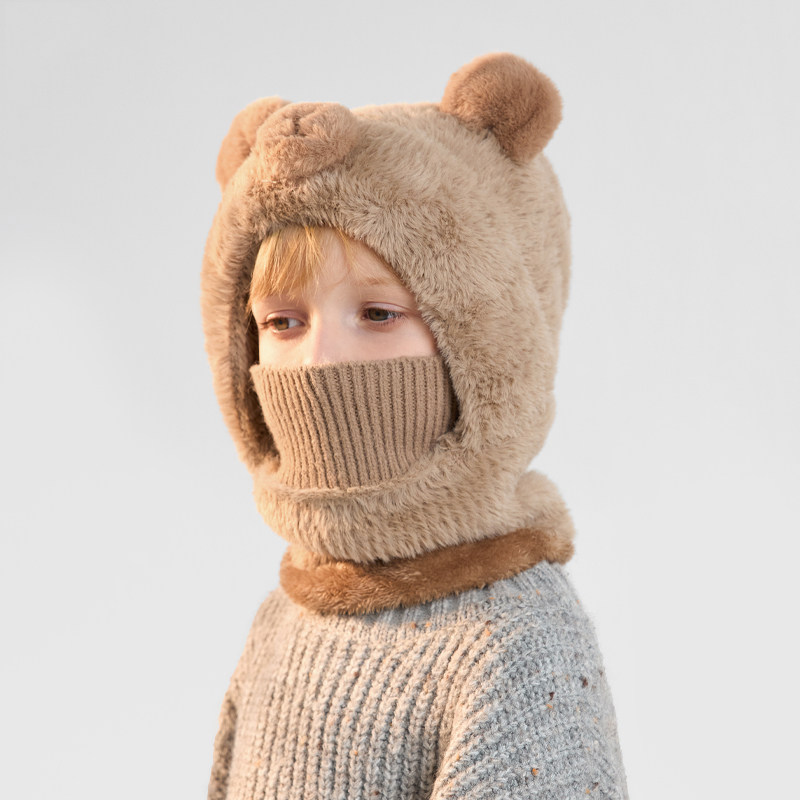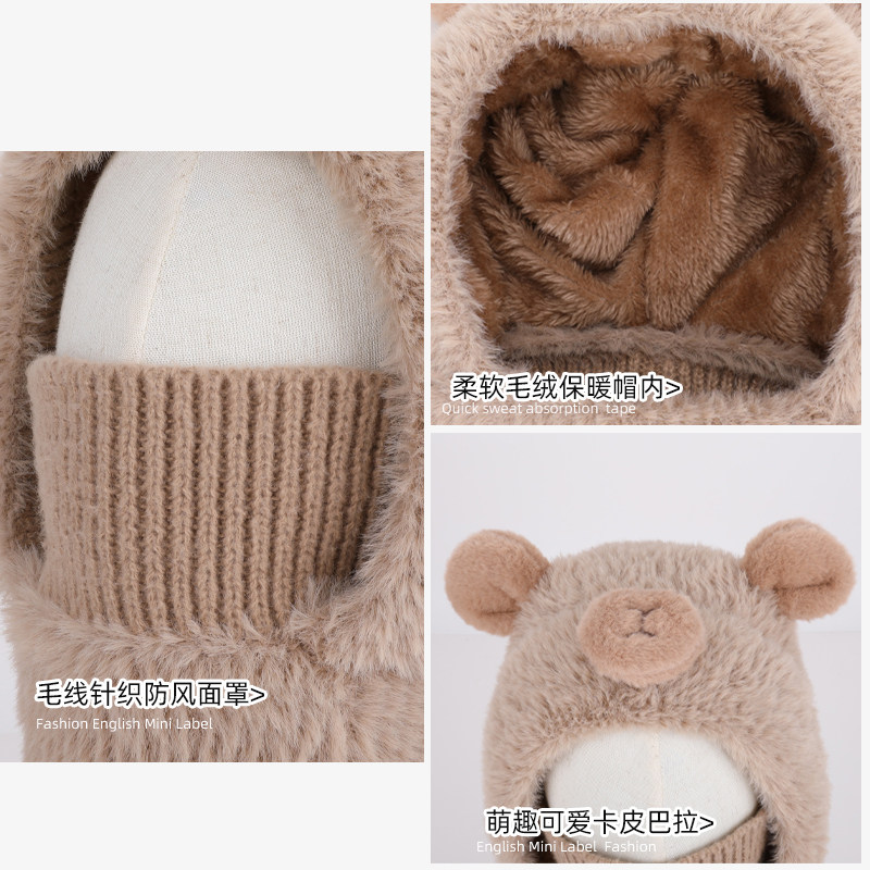 📚 儿童东北哈尔滨雪乡防寒装备面罩围脖帽子一体延吉穿搭加绒雪地帽