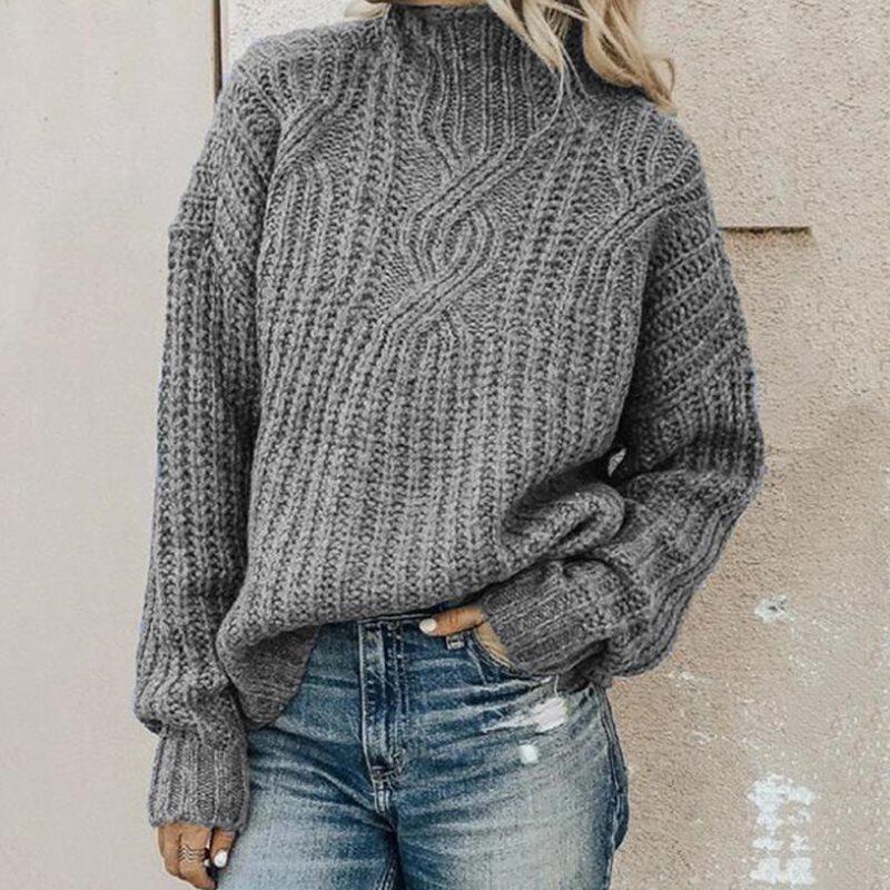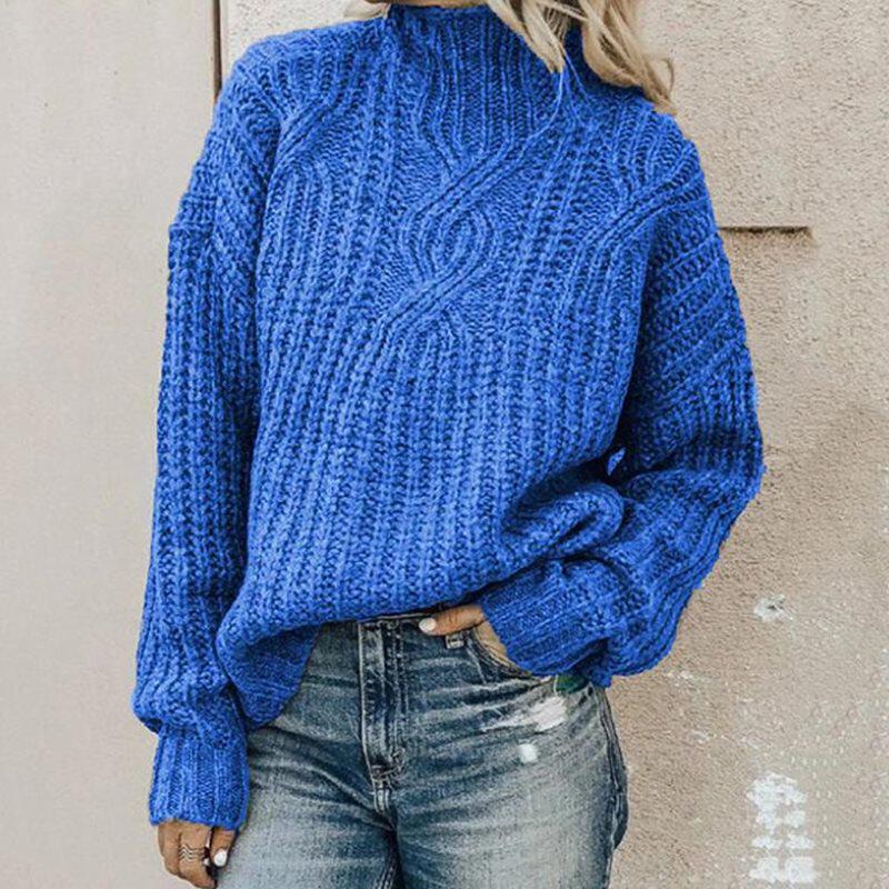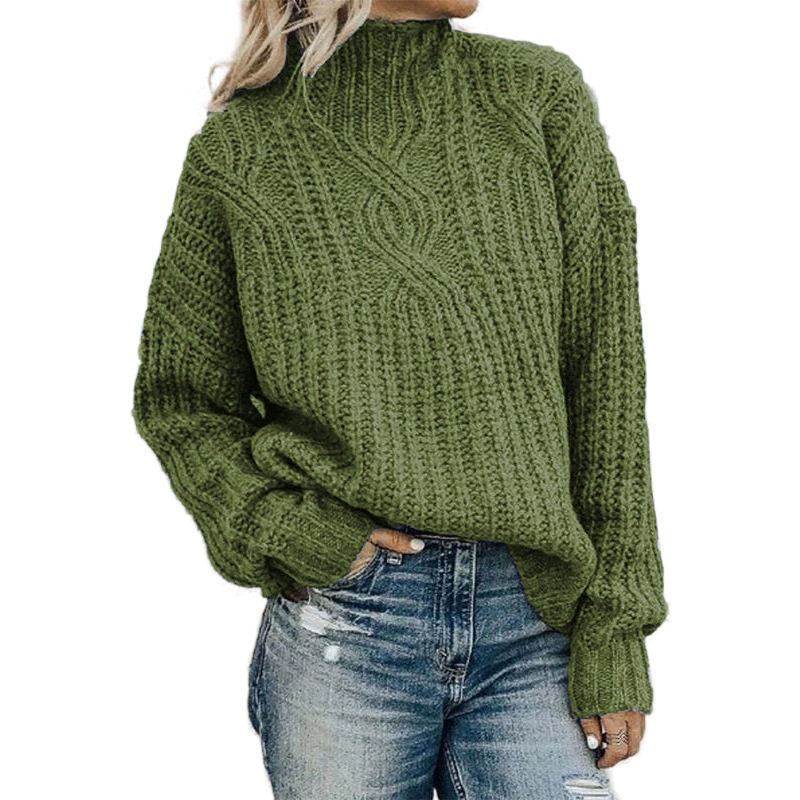 📚 欧美风新品跨境亚马逊速卖通毛衣女士高领麻花针织上衣套头衫夹