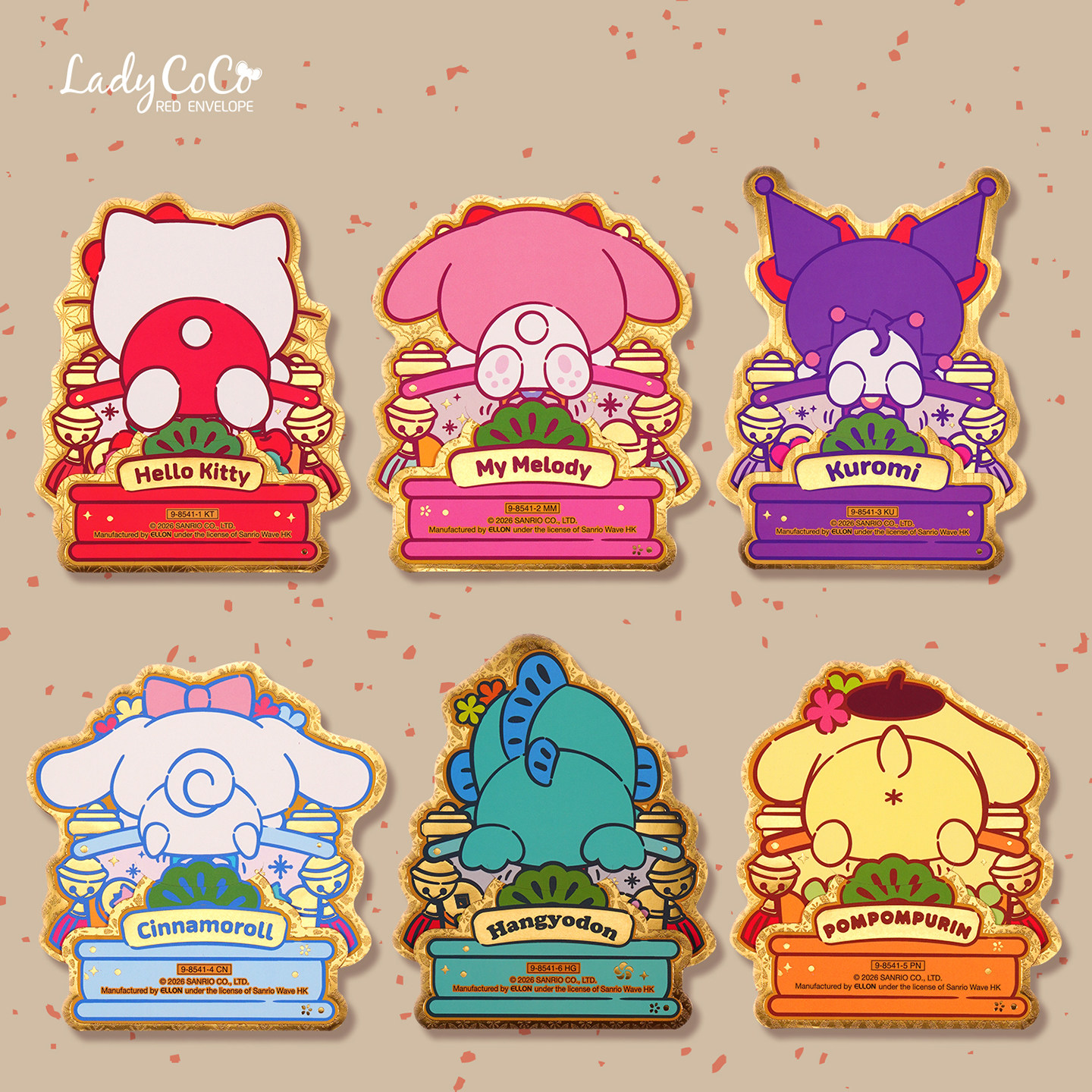 📚 2026新年香港三丽鸥kitty玉桂狗丑鱼美乐蒂库洛米烫金利是封红包