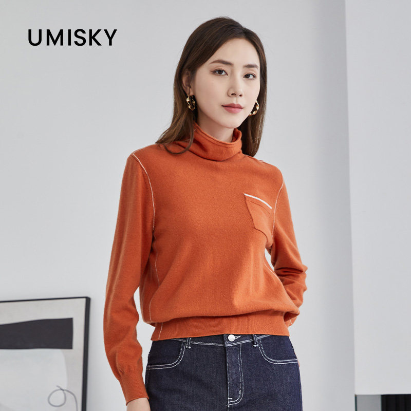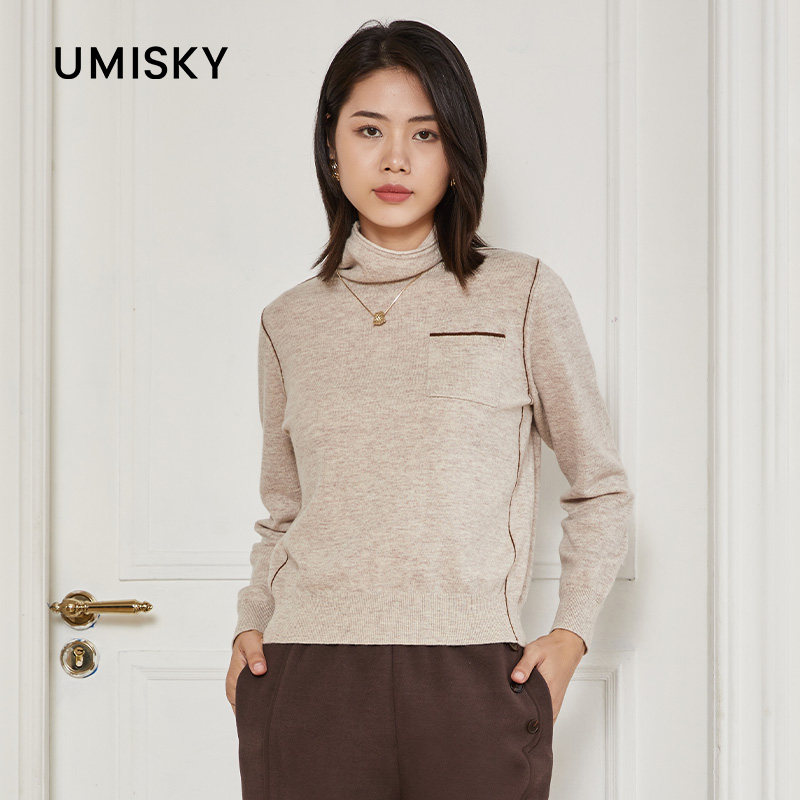 📚 umisky优美世界专柜同款冬季高领撞色口袋针织毛衫上衣SK4W3229