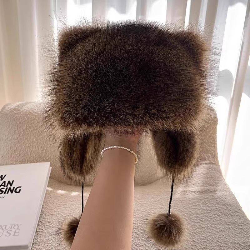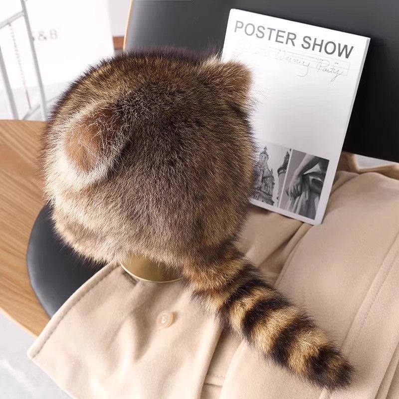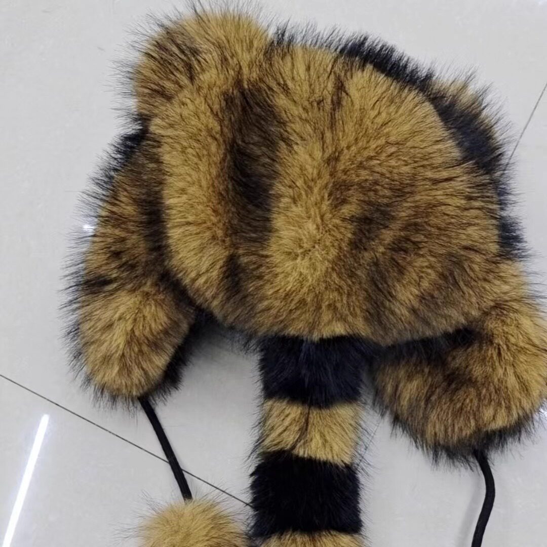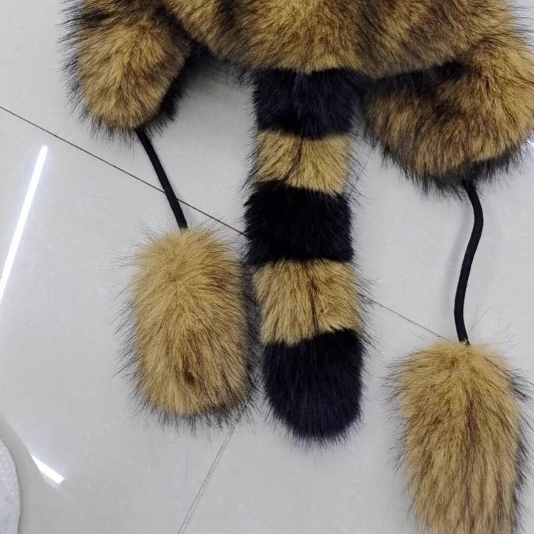 📚 冬季小浣熊霸王帽子加厚保暖护耳帽儿童成人仿美洲貉狐狸毛猫耳帽