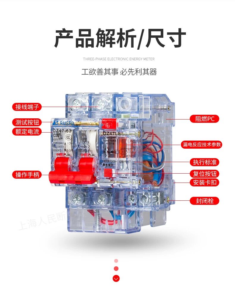📚 上海人民透明漏电保护器15MA漏电断路器DZ47LE漏保16A32A40A63A