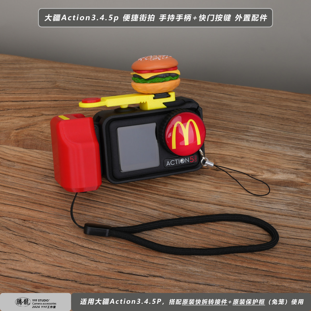 📚 麦当劳M适用大疆DJI action4/5pro相机原厂兔笼街拍手柄快门按键