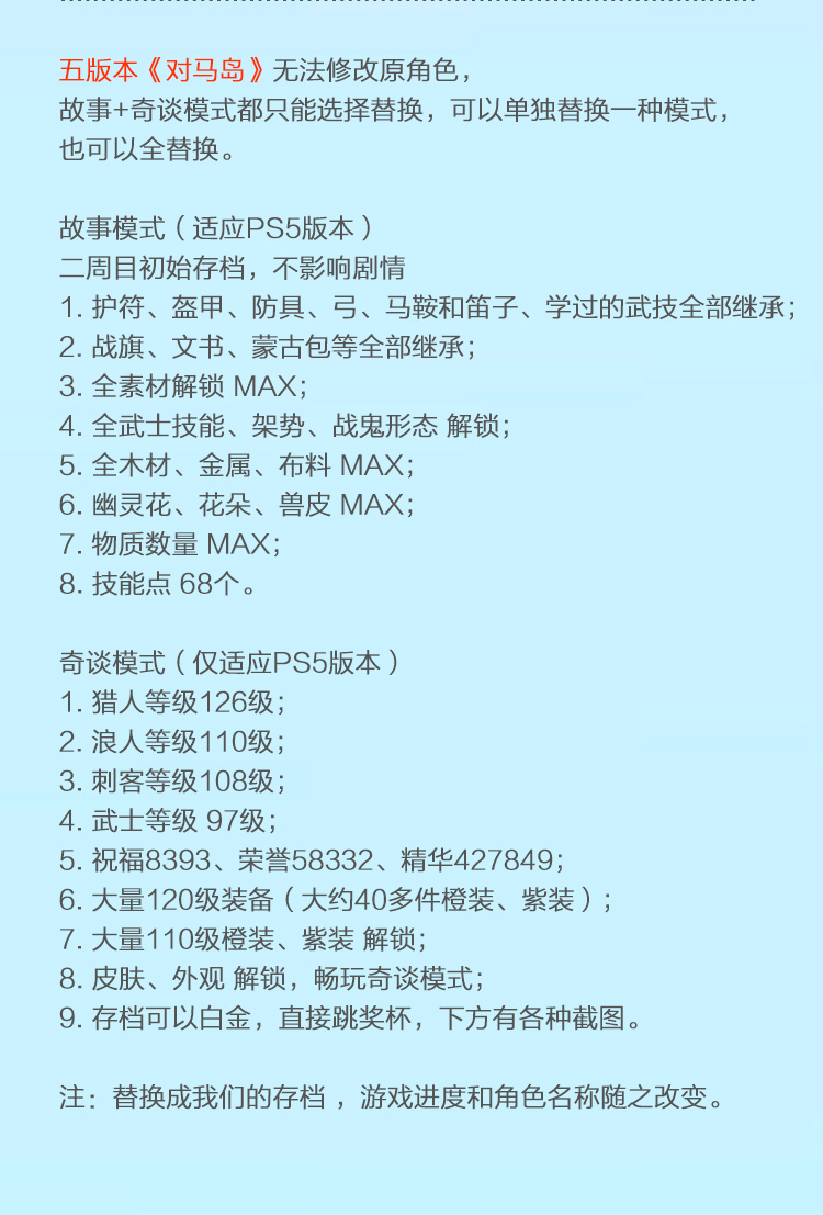 📚 存档修改 器PS4/PS5对马岛之魂奇谈奇谭模式线上刷全装备代练备份