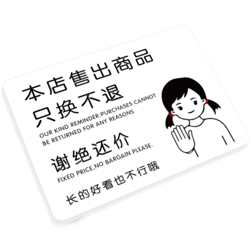 📚 定制谢绝还价提示牌不讲价不还价牌本店售出商品不退不换挂牌门牌