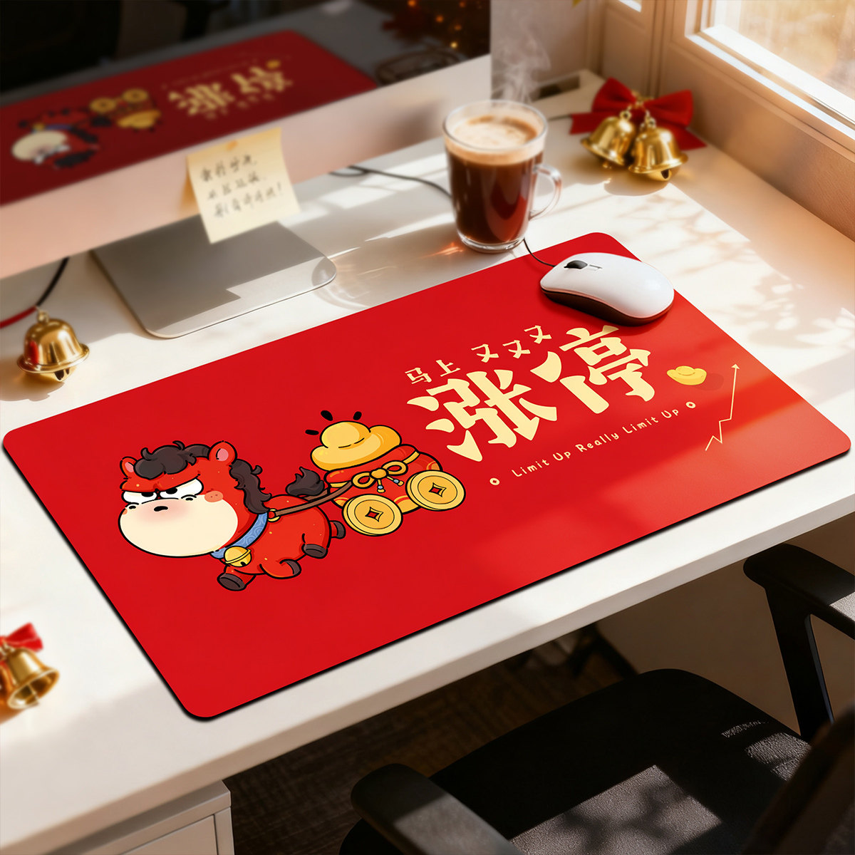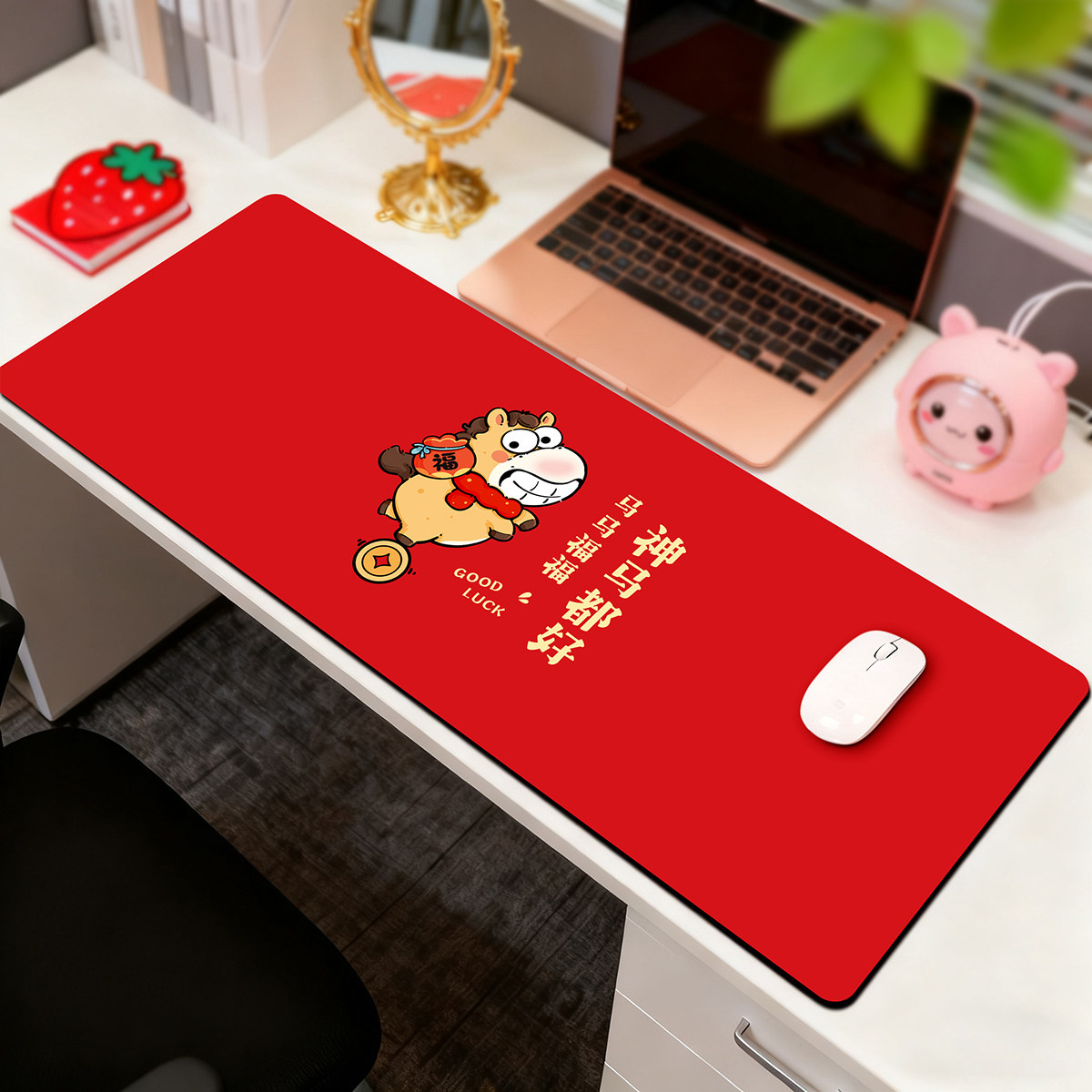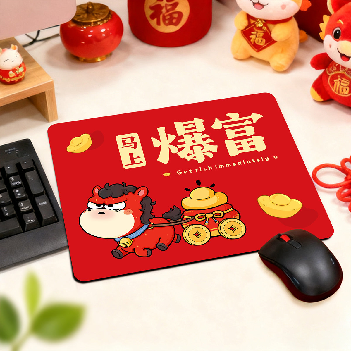 📚 红色2026马年卡通鼠标垫马上暴富键盘垫加厚硅藻泥办公室电脑桌垫