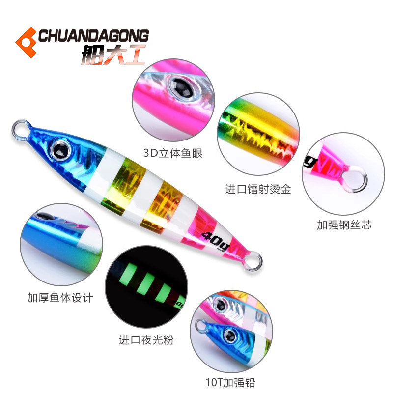 📚 船大工jms125小胖子路亚铁板饵马鲛铁板海钓慢摇带鱼钩海钓铁板