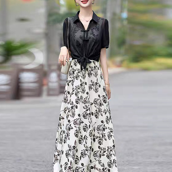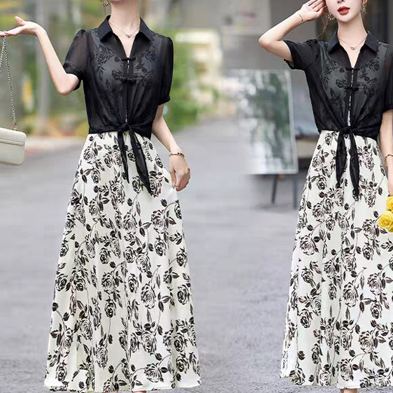 📚 秋思婵女装碎花吊带连衣裙衬衫两件套女夏2025新款气质时