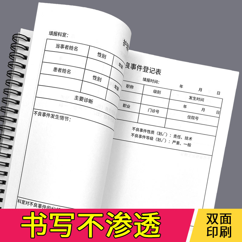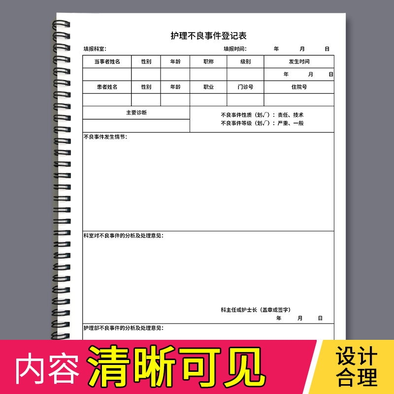 📚 护理不良事件登记表护理记录本记录表护士护理记录护理质量问题反馈表护士工作事故记录本医院医疗护理记录单