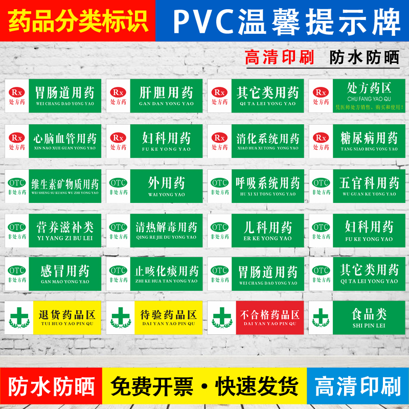 📚 保健食品非处方退货待验药品区药店分类全套标识牌门诊医院诊所大药房儿科妇科感冒胃肠道外用药GPS认证标牌