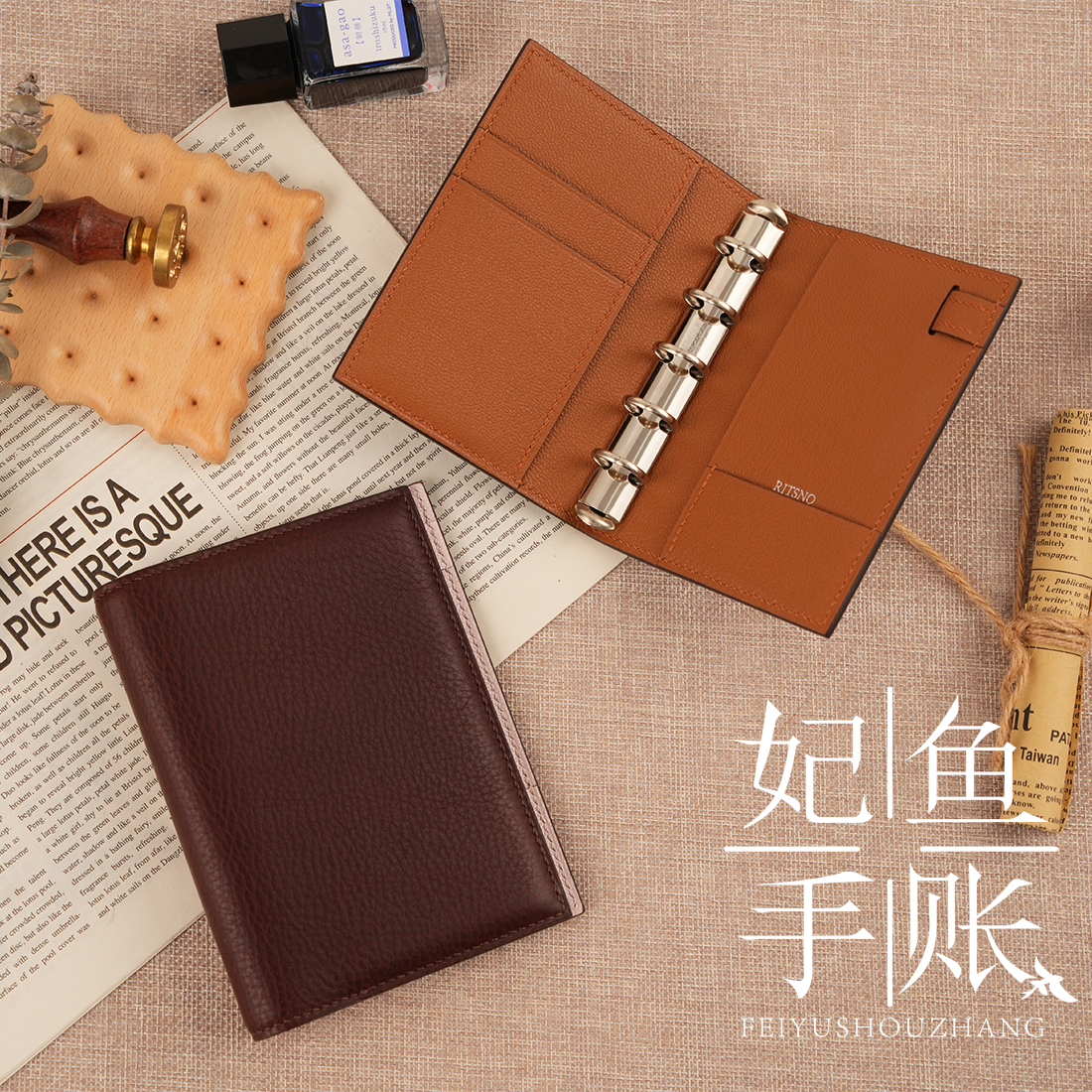 📚 现货日本RitsnoPremier手帐本M5/A7/A6 Mbox皮巧克力拼粉色法羊