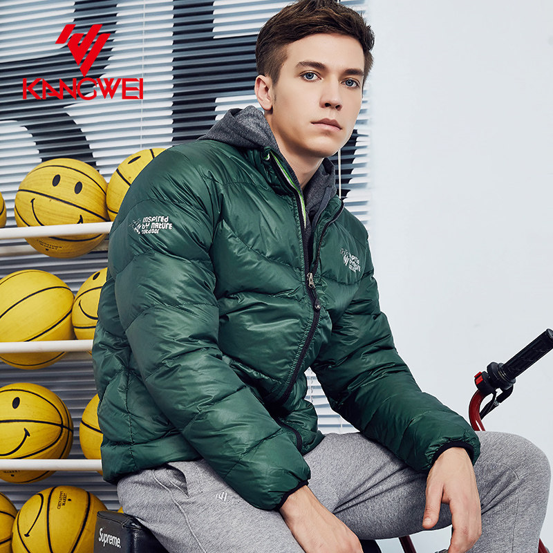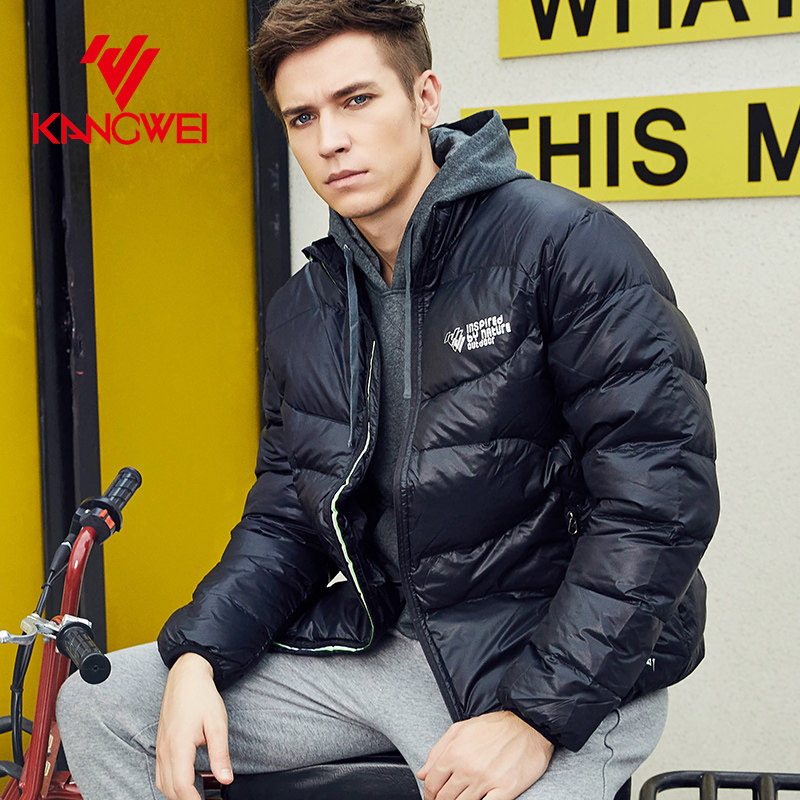 📚 康威品牌男士户外运动休闲拉链冬季保暖外套灰鸭绒羽绒服