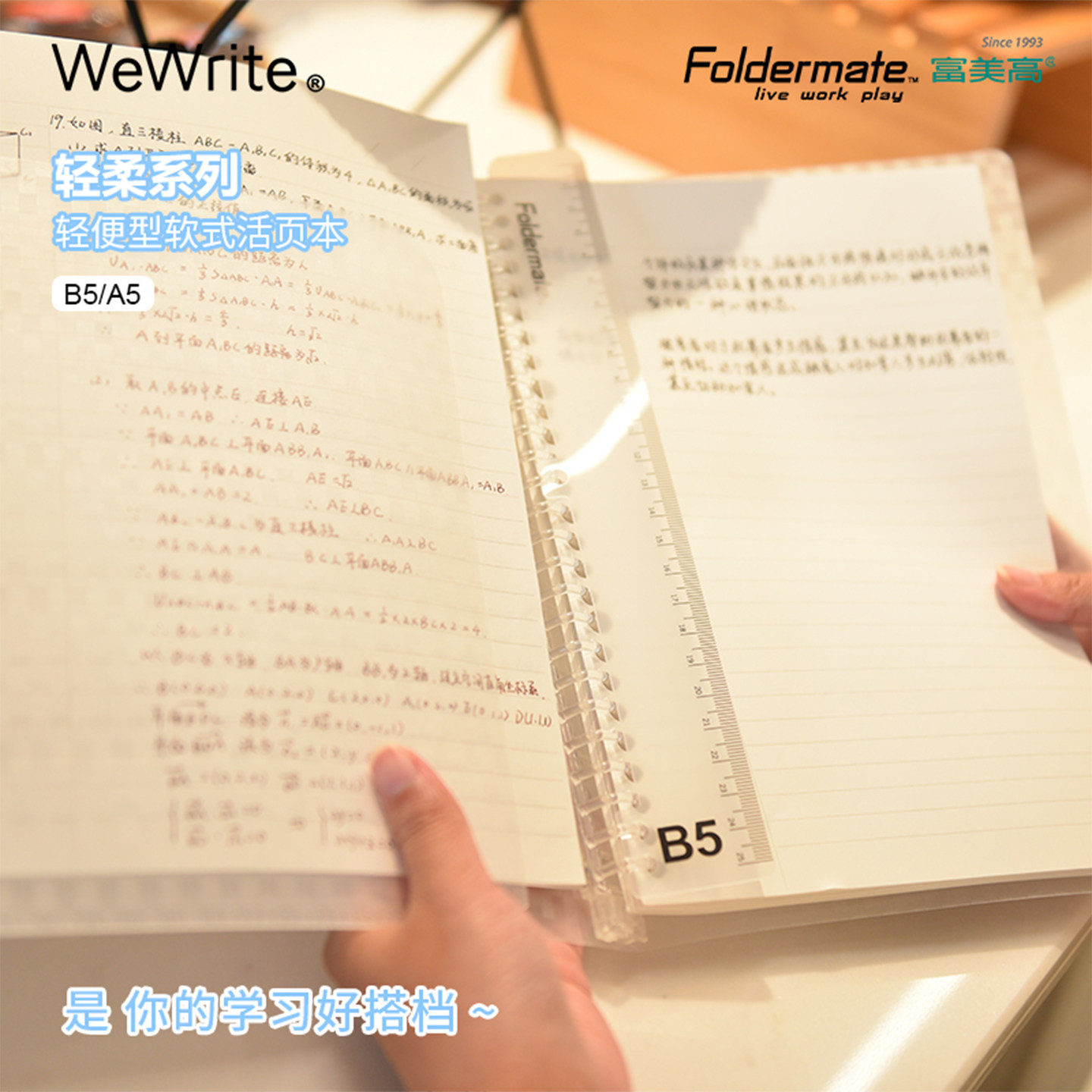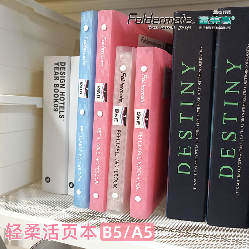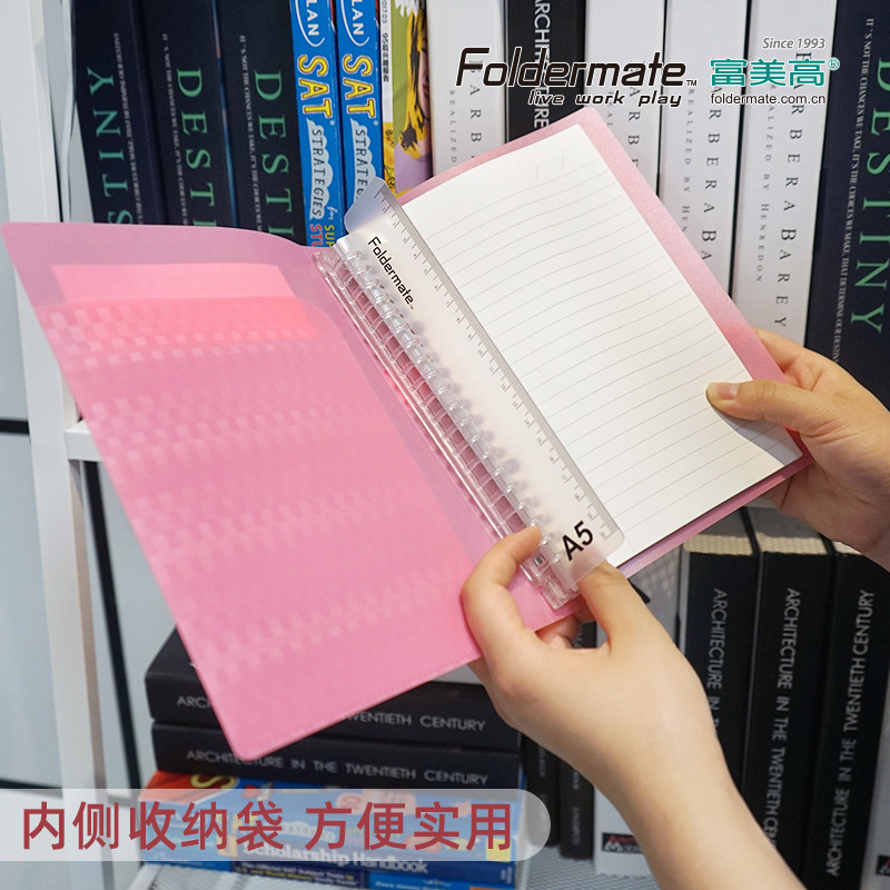 📚 富美高轻柔系列A5B5活页本Foldermate笔记本付书签尺白色粉色蓝色40页横线PP封面26孔20孔大学生