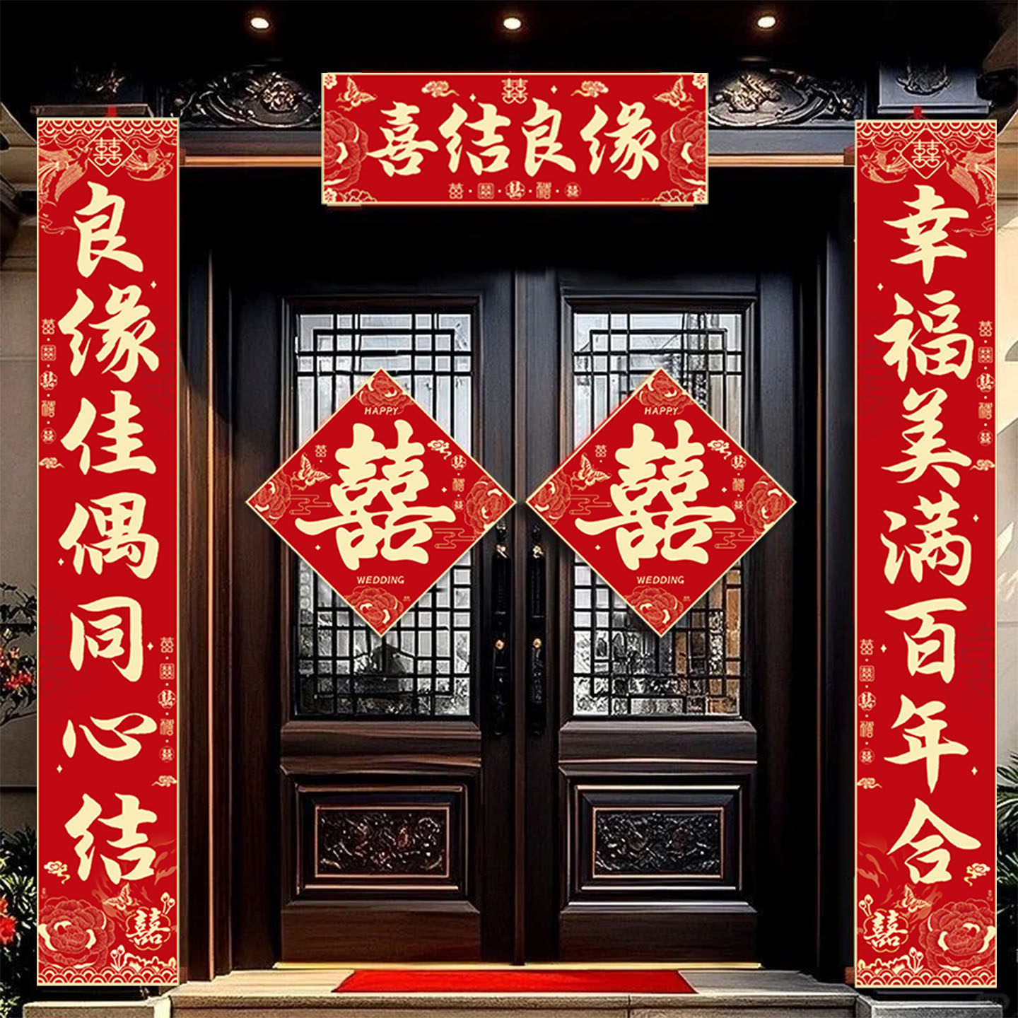 📚 结婚对联农村男方大门入户门女方出嫁2026新款喜字装饰新婚喜联