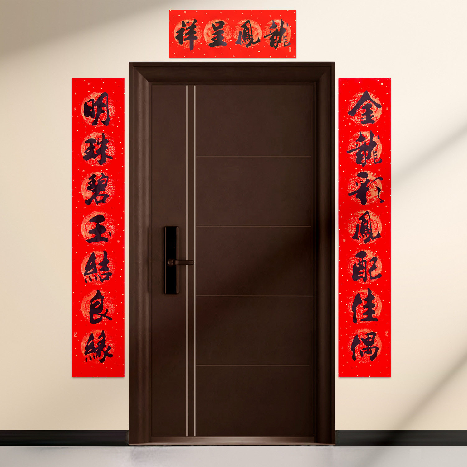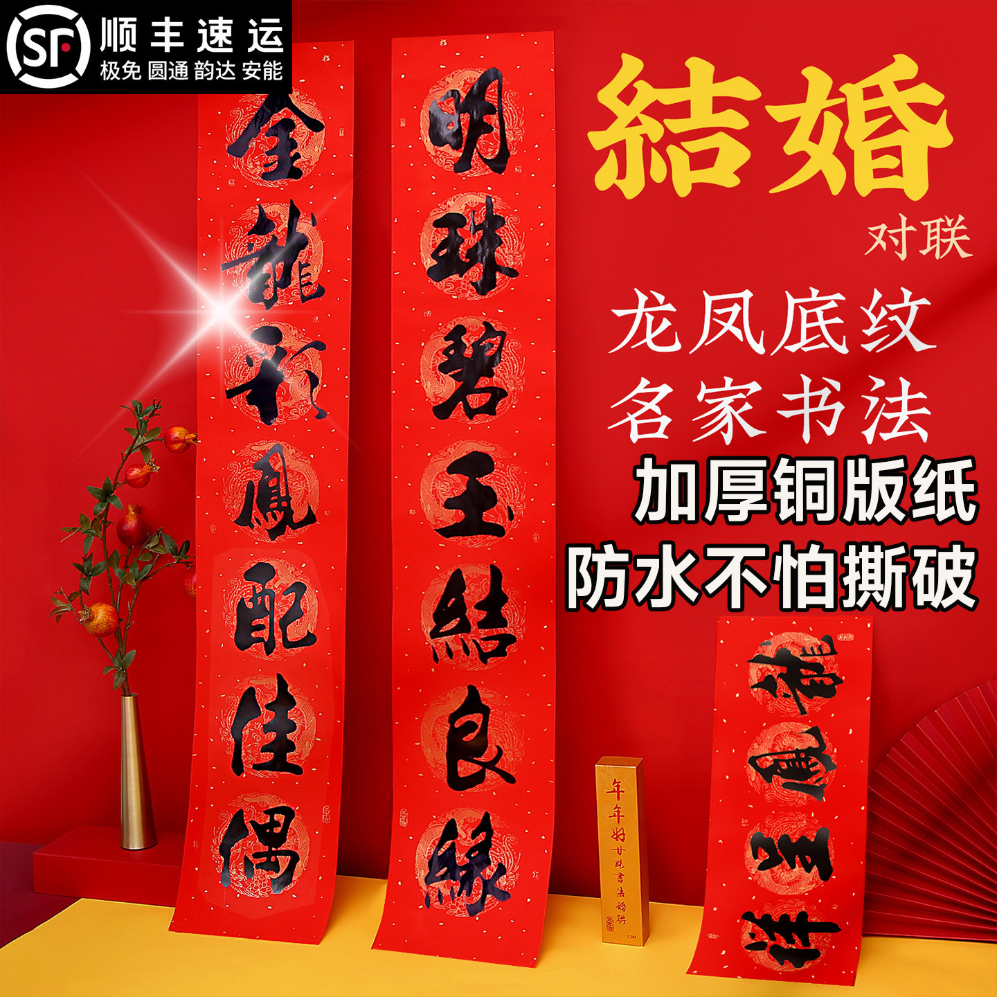 📚 结婚对联男方大门女方出嫁喜事新婚手写书法新款入户门农村礼盒